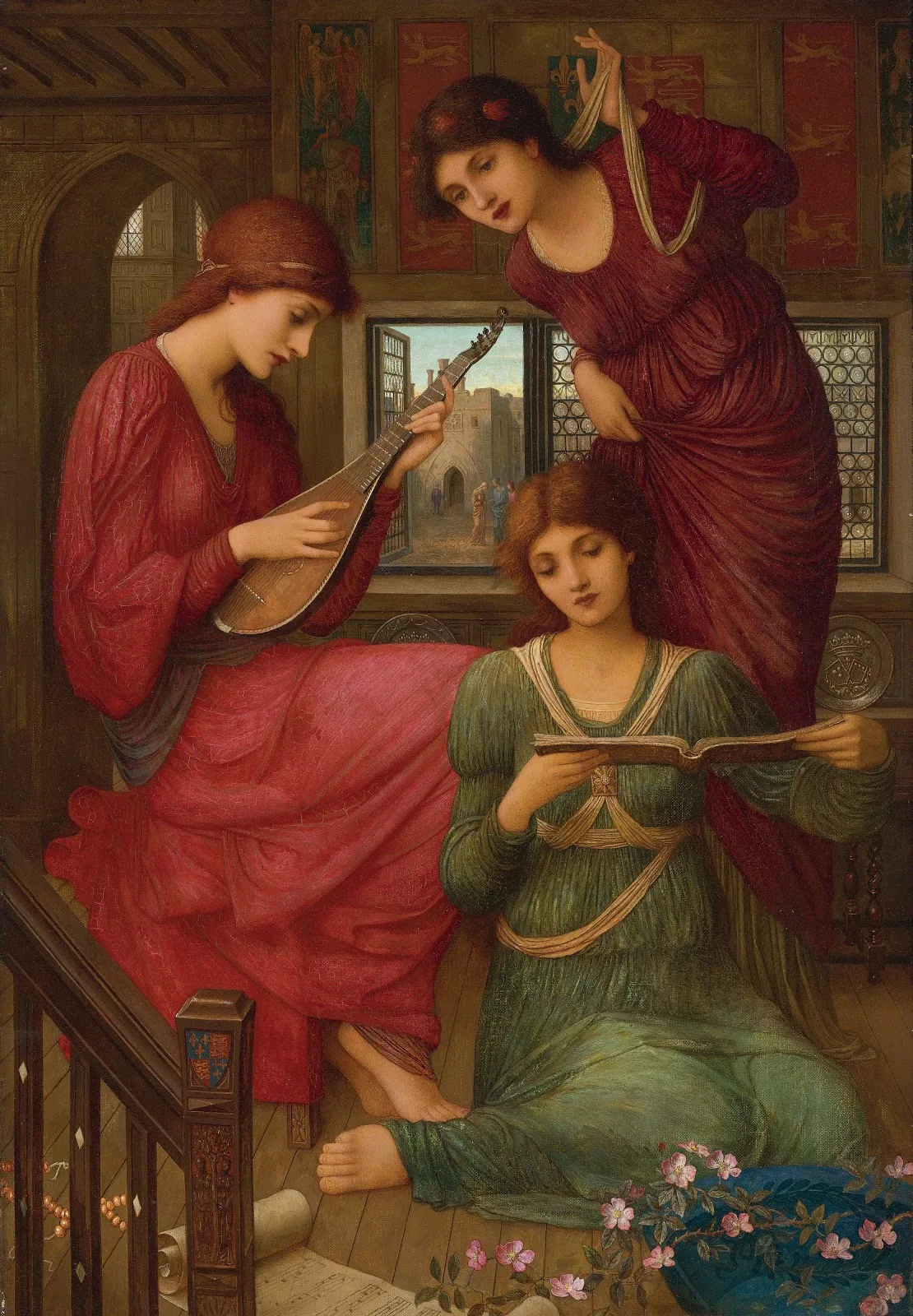 John Melhuish Strudwick (1849-1935) studied at the Royal Academy Schools, where he was not a successful student. Following this, he worked as a studio assistant to Burne-Jones and Stanhope. The influence of Burne-Jones is clearly visible in his work. Stanhope was a highly talented individual in his own right, however, and his paintings may be judged on their own considerable merits.