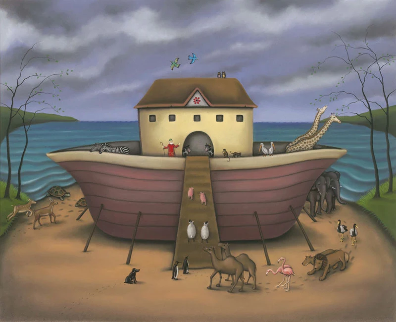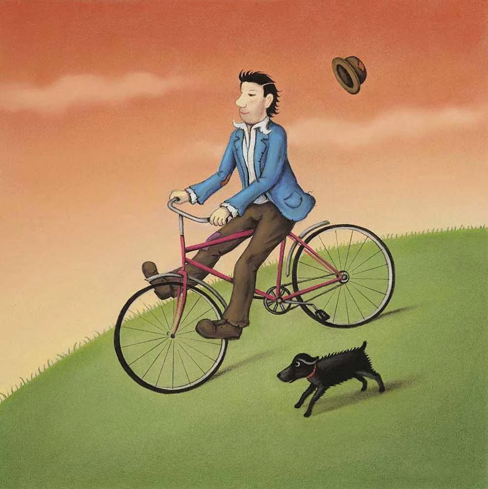 My distinctive paintings are informed by a love of colour, influenced by artists such as Degas, for his wonderful pastel studies and great sense of composition and Chagall, who created his own world of myth and magic drawing on his own recollections and experiences, which is something I like to do with my own work. By the mid-eighties I was looking for new inspirations and unusual subject matter to draw. I visited the puppet theatre at the Midland Art Centre and was given access to a storeroom of puppets and marionettes down in the basement. What I found laid out before me was a world lost in time, shrouded under a cloud of dust. I felt I had been given a key to a magical kingdom and my aim was to bring this world to life. In the first paintings I produced the puppets still had their strings, only later did I release them from their bonds creating my own assortment of characters and the beginnings of the world you see today.