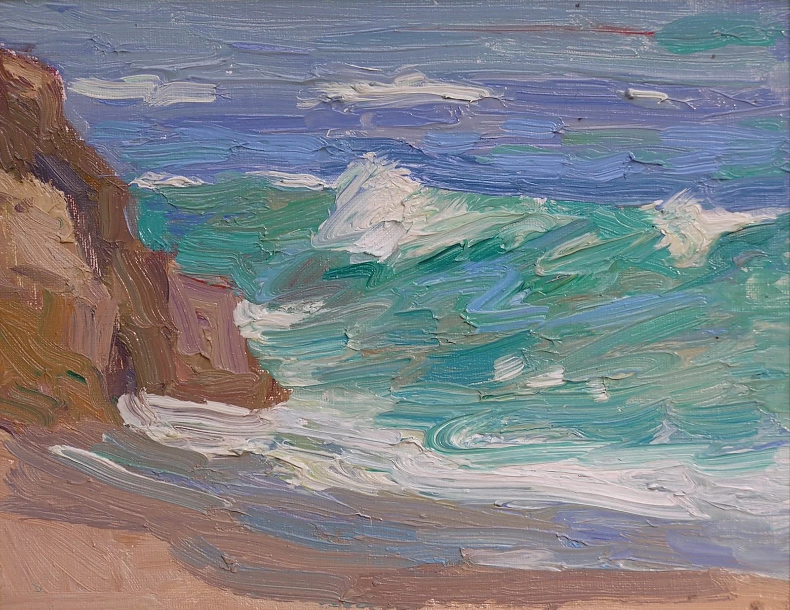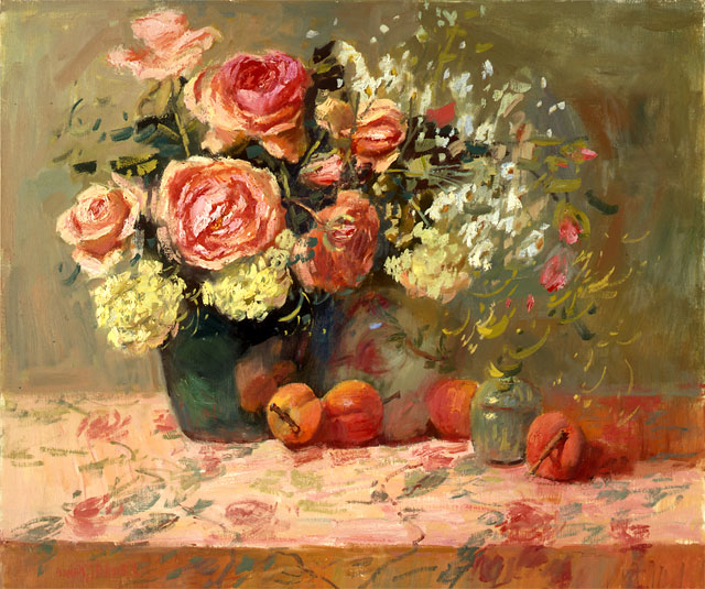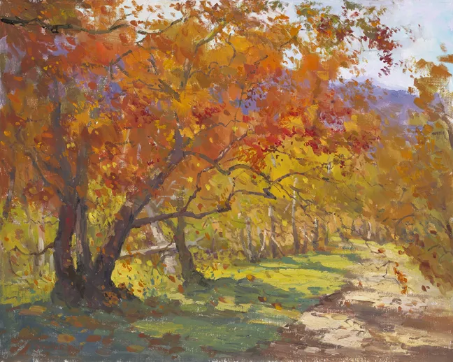 This valuable guidance, along with influences including Iliya Repin (1844-1930) and Valentin Serov (1865-1911), has yielded striking original paintings filled with fresh color, depth, and vitality.