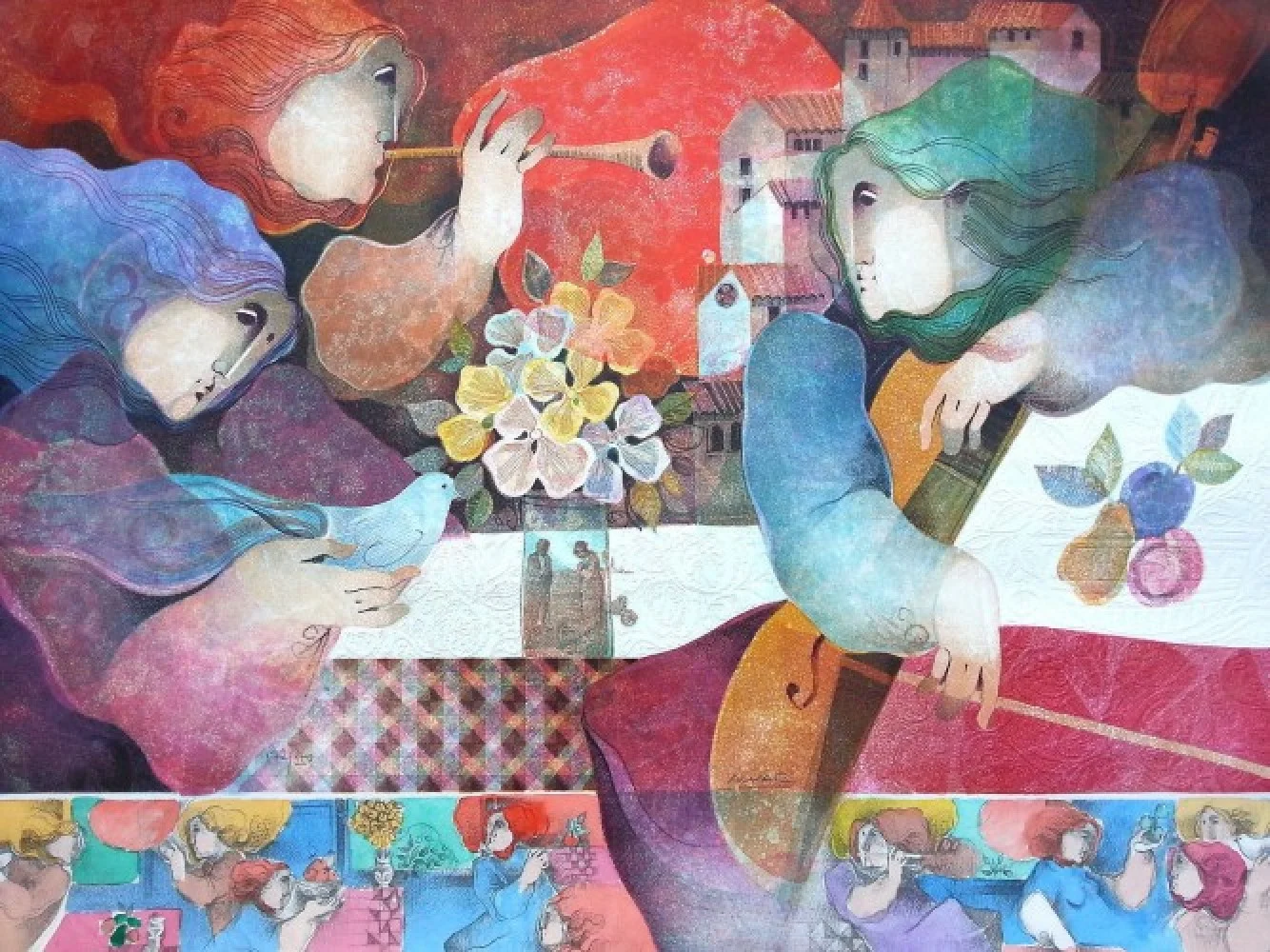 In 2001 and 2003, Alvar created public mixed-media works for the Four Seasons Building and Plaza de Mallorquines in Montgat. Also in 2001, a book entitled, “Alvar: Thirty Years of Lithography” was published, chronicling his lithographs. In 2005, “Alvar in Color and Poetry”, a book by Dr. Betty Jean Craige, Marjorie Agosin and Alvar, was published.