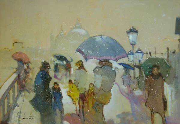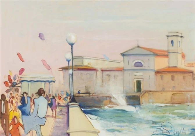 Questo repertorio si è rinnovato nel tempo ma l’artista non lo ha mai alterato con evidenza né ha mai modificato completamente il proprio stile. Soggetto principale dei suoi dipinti è la sua città natale, Livorno che ritrae numerose volte; tuttavia nel suo repertorio sono presenti anche opere che ritraggono Veneziae Milano.