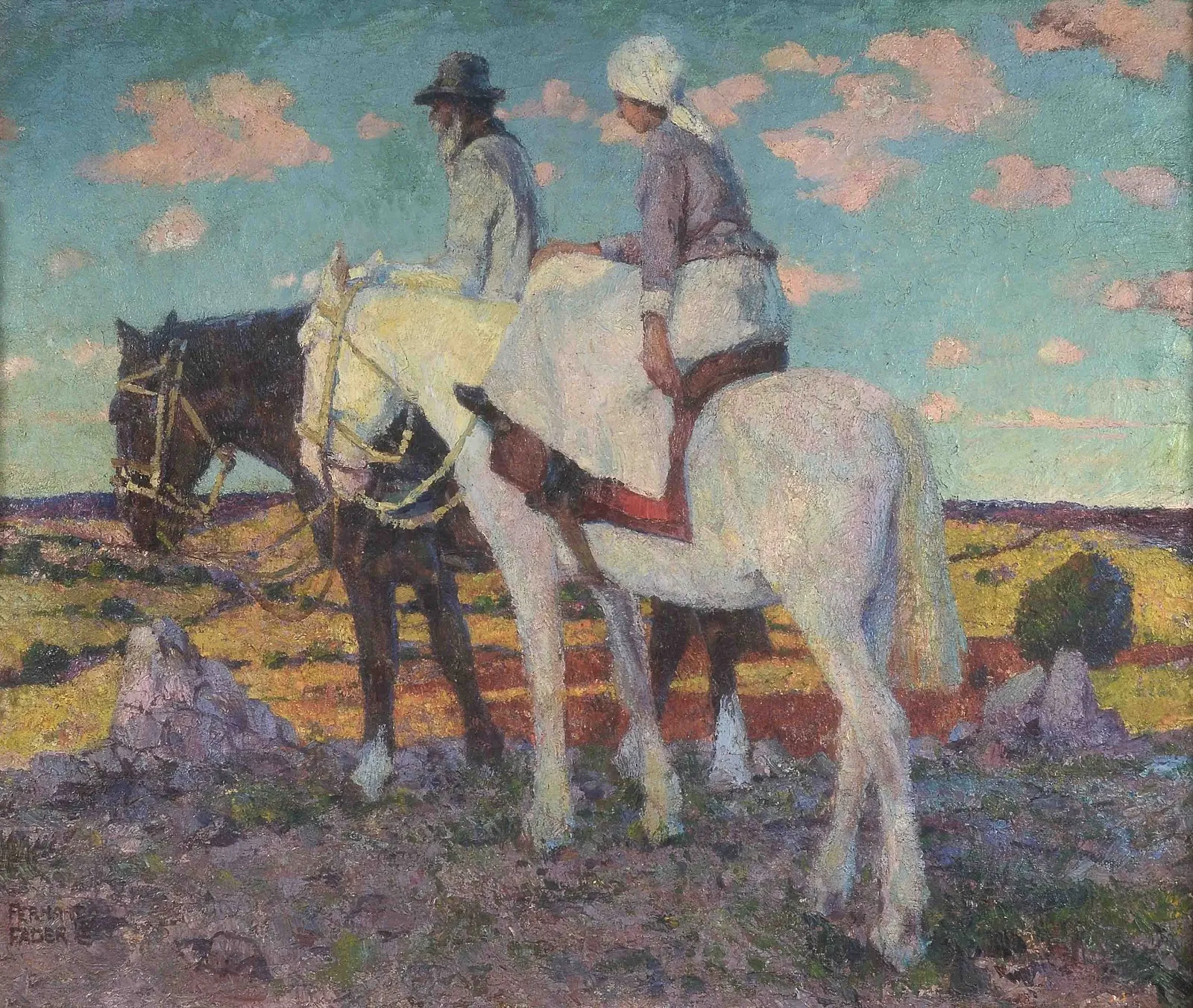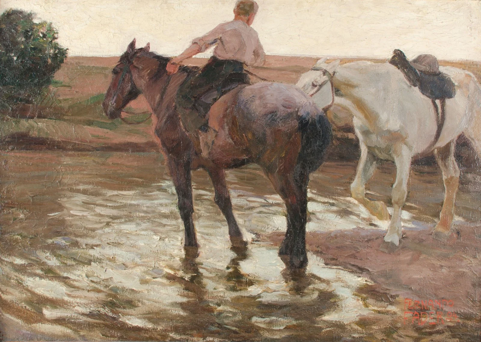 Fernando Fader was born in Bordeaux, France in 1882. His father, of Prussian descent, relocated the family to Argentina in 1884, settling in the western city of Mendoza before returning to France a few years later. Graduating from secondary school, Fader returned to Mendoza in 1898, where he first practiced his skill as an artist painting urban landscapes. Fader relocated to Munich in 1900, where he enrolled at a local vocational school. This training allowed him enrollment at the prestigious Munich Academy of Fine Arts, where he was mentored by Heinrich von Zügel, prominent in Europe's Naturalist Barbizon School.