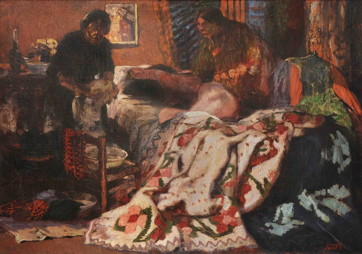 His stay in Córdoba refocused his work along more Impressionistic lines, employing a greater use of sunlight contrasts. His new surroundings also gave him ample bucolic inspiration, and he created many of his most well-known works during this period, many of which romantically portrayed farm life. This productive period was cut short by a sudden worsening of Fader's breathing difficulties around 1921, which by then had become chronic asthma and precluded outdoor work. This led Fader to turn to still life, nudes and self-portraits, resulting in a third, distinct period in the artist's prolific body of work.