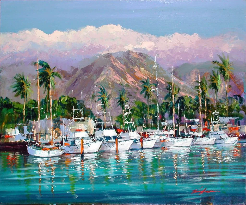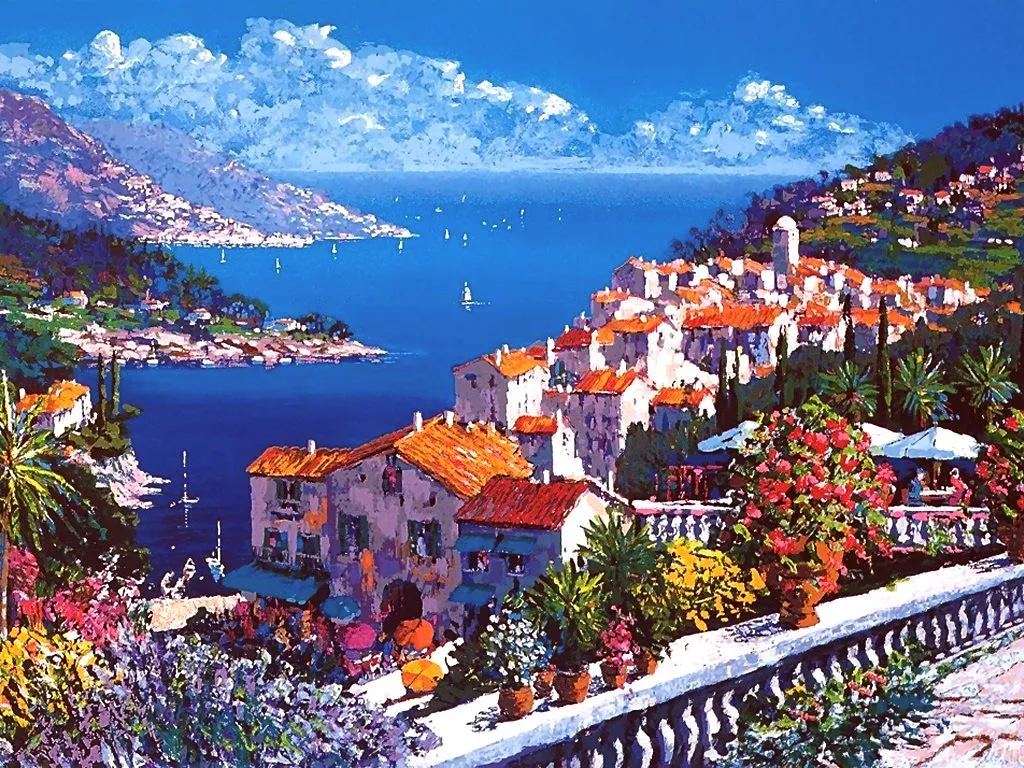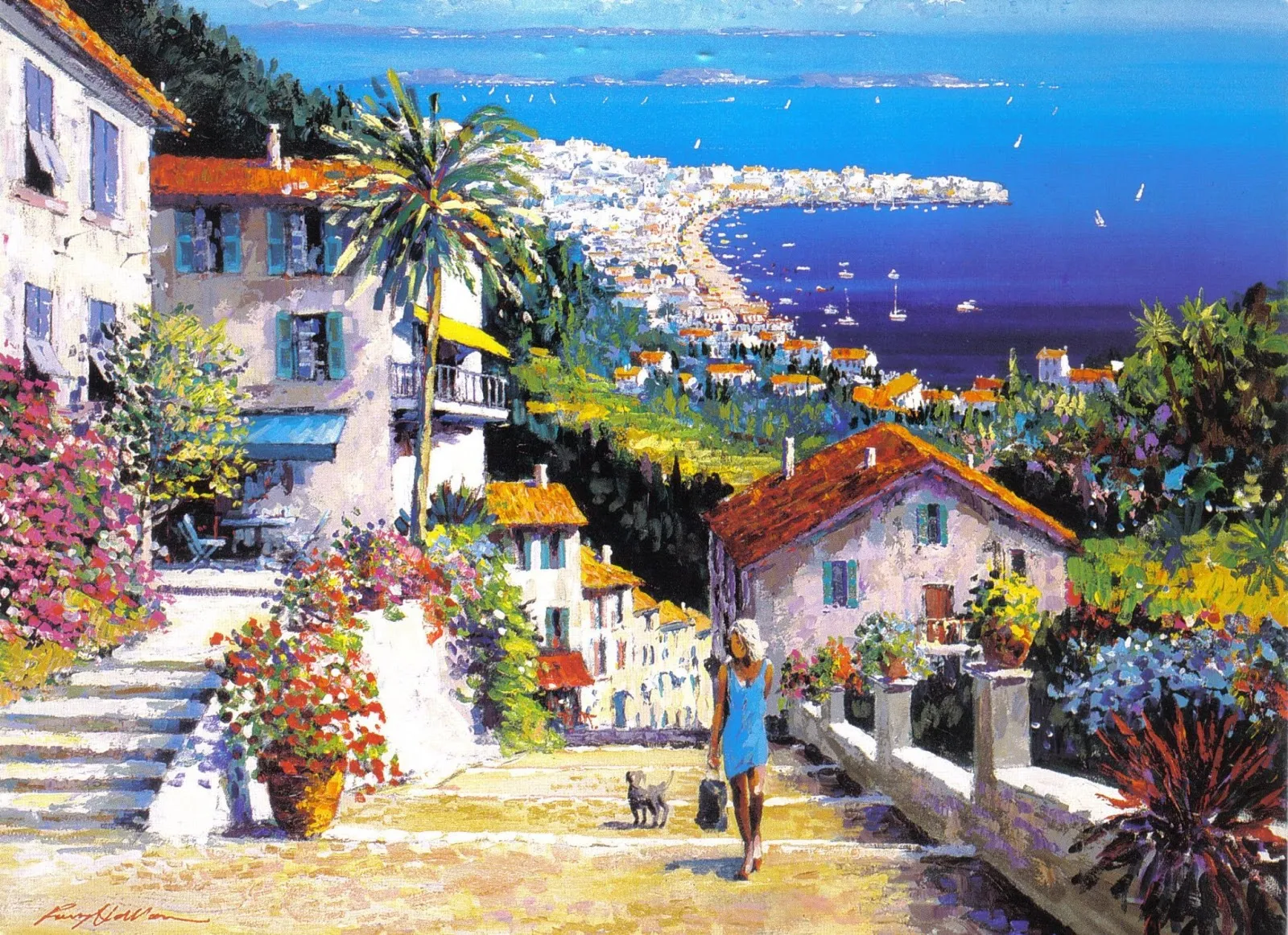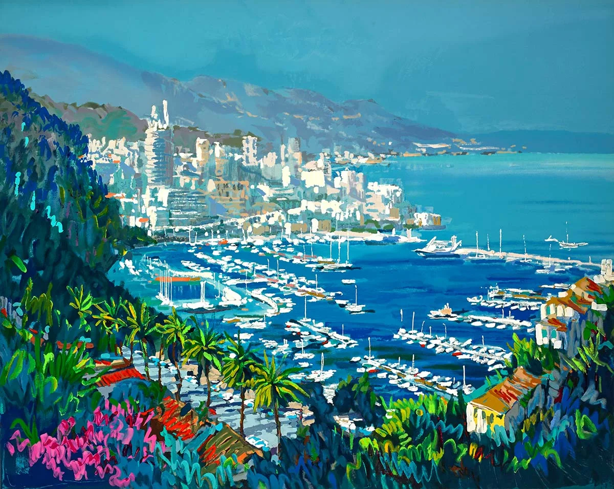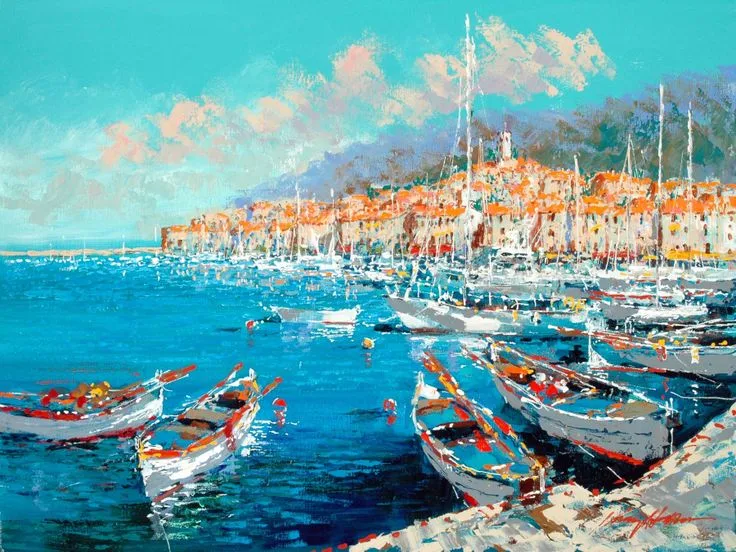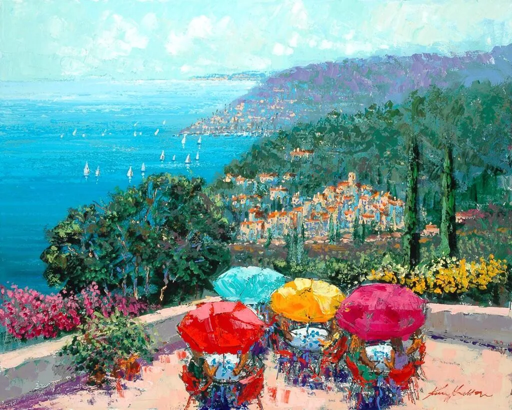 Inspired by the Fauves, Hallam has a love for the 19th century French Post-Impressionists, Cézanne and Van Gogh. Hallam returns frequently to St. Tropez and the French Riviera, two of his favourite sources of inspiration. Noted for his striking colour harmonies, Hallam's panoramas continue to draw accolades, including a first place award by L’Association Pour le Promotion Artistique Francais. His work has been featured in a large number of print articles, such as the October 400 issue of Forbes magazine in 1999 as well as in PBS television specials. Chalk & Vermilion Fine Arts and Martin Lawrence Galleries are Hallam's most notable publishers.