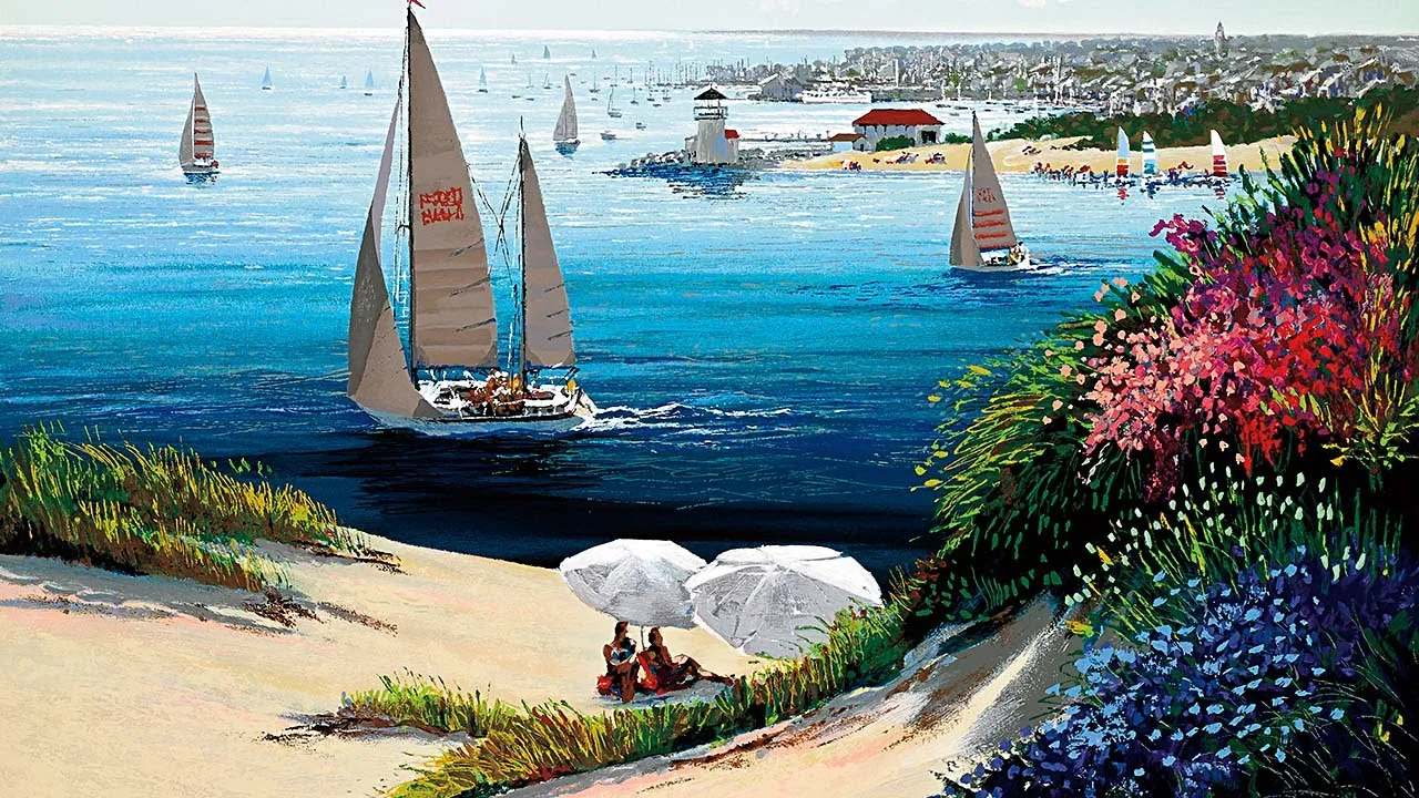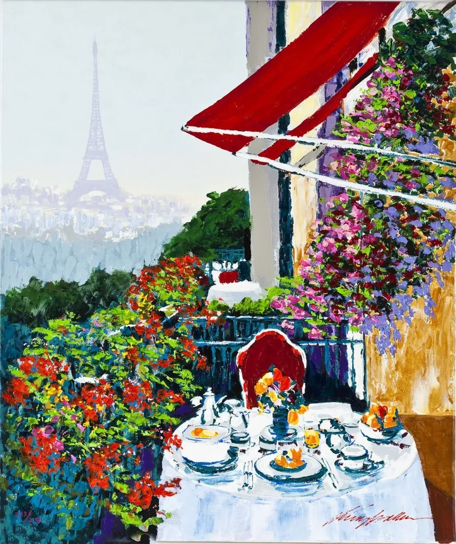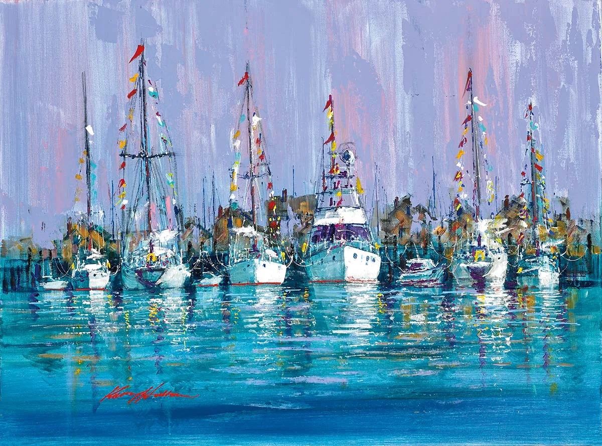 Inspired by the Fauves, Hallam has a love for the 19th century French Post-Impressionists, Cézanne and Van Gogh. Hallam returns frequently to St. Tropez and the French Riviera, two of his favourite sources of inspiration. Noted for his striking colour harmonies, Hallam's panoramas continue to draw accolades, including a first place award by L’Association Pour le Promotion Artistique Francais. His work has been featured in a large number of print articles, such as the October 400 issue of Forbes magazine in 1999 as well as in PBS television specials. Chalk & Vermilion Fine Arts and Martin Lawrence Galleries are Hallam's most notable publishers.