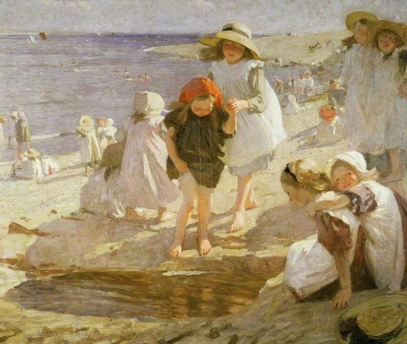 Growing up in Nottingham, Laura Johnson’s precocious talent was encouraged by her mother, herself an amateur artist. Aged thirteen, Laura enrolled as a full-time student at Nottingham Art School where she met her future husband Harold Knight. The couple married in 1903 and based themselves in the Yorkshire fishing village of Staithes, painting the hard-working ‘fisherfolk’. They also spent time at an artists’ colony in Laren, Holland. By 1908, the Knights had settled in Cornwall, among the community of artists that had grown up around the Newlyn Art School, founded in 1899.