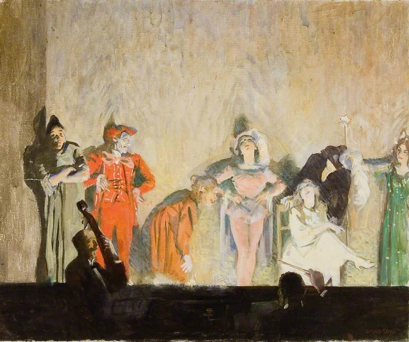 In 1919, Laura and Harold Knight moved to London, seeking new artistic challenges and markets for their work. For Laura, evenings spent watching the Ballets Russes during their London seasons at the Alhambra or Coliseum theatres provided "complete satisfaction for every aesthetic sense". Incorporating set and costume designs by artists including Henri Matisse, these productions helped introduce European modernism into Britain. However, unlike some artistic contemporaries, Knight sought inspiration in the more intimate experience of the dancers backstage, an approach pioneered in the nineteenth century by the French artist Edgar Degas.