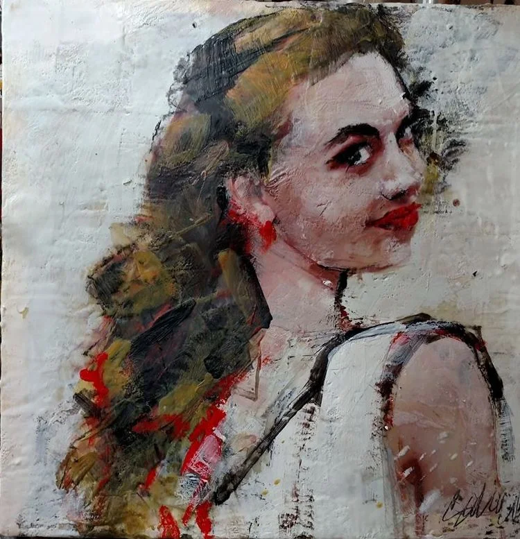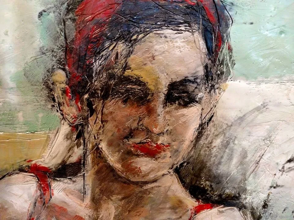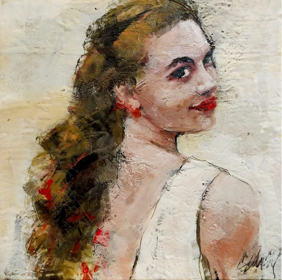 I choose to paint with encaustics - painting with layer upon pigmented layer of beeswax. The physicality of the process - carving, scraping, burning into the wax - allows me to release the energy inside of me, incorporating light and depth into my work. Digging deep into the wax mimics my intent to dig deep within a person to show who they really are.