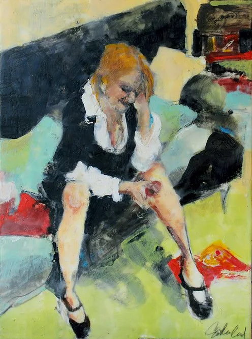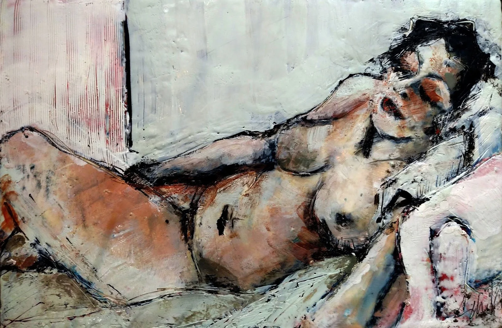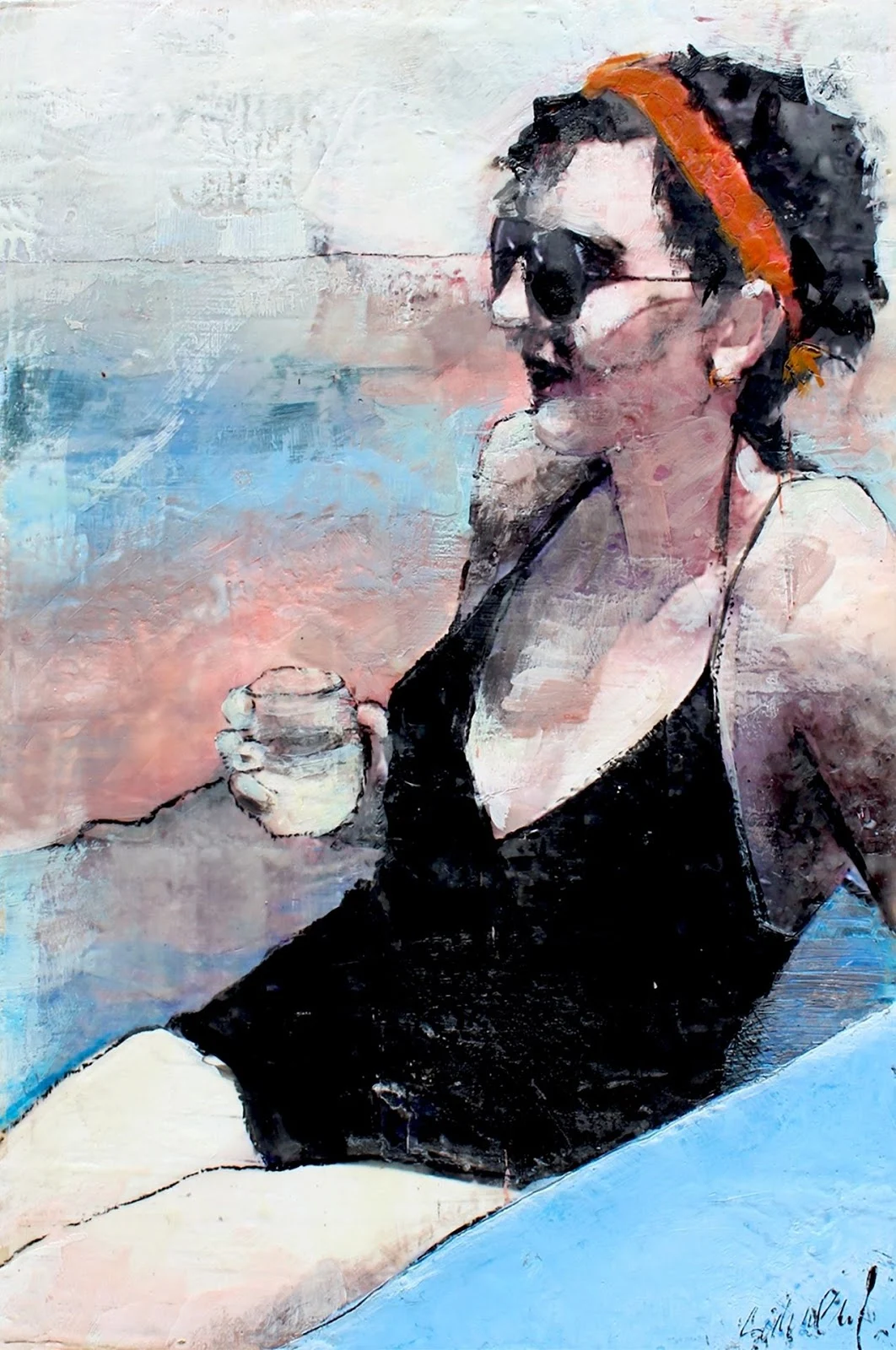I often paint Rubenesque women. Capturing the twist of a hip, the lovely line of a neck, frees me. My figures are real and truthful. Curves are celebrated. I paint moments, hoping the viewer embraces the beauty we all feel inside.