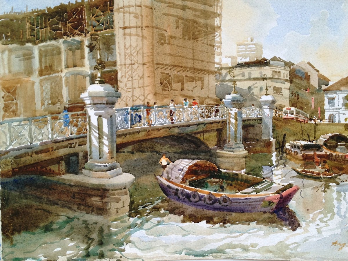 Singaporean Artist Tong Chin Sye is an avid traveller who sketches and paints on location. He is inspired by architectural and cultural subject matters. Tong’s painting technique is distinctive as his oils and watercolours naturally blend in the beauty of Chinese Calligraphy. Painting the rapidly changing cityscapes and street scenes of Singapore continues to be his passion.