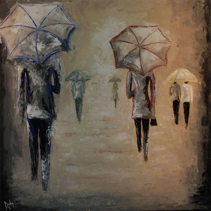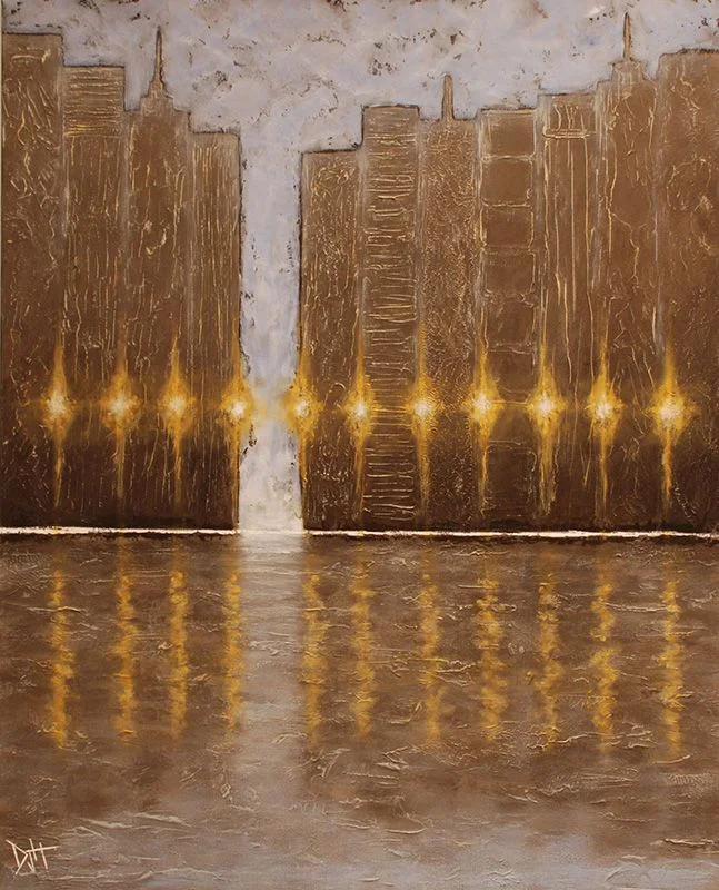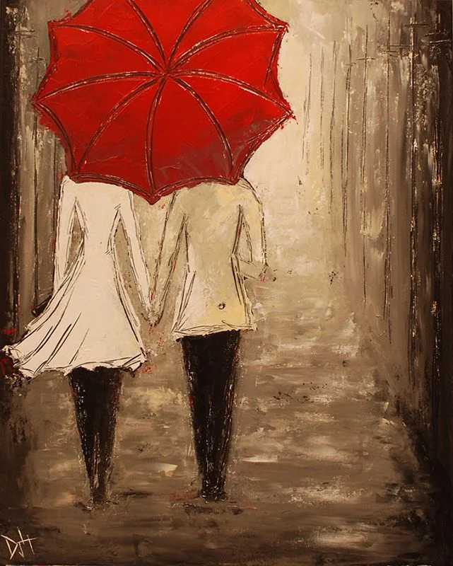 When beginning a painting, I allow the paint and colors to move me. I don’t typically have a carefully mapped out plan for each piece, but rather just an idea or focal point that develops throughout the creation. An emotional interest is the true goal in my work. Creating a mood, reflection, wonder…. something which allows you to escape each and every time you take it in.