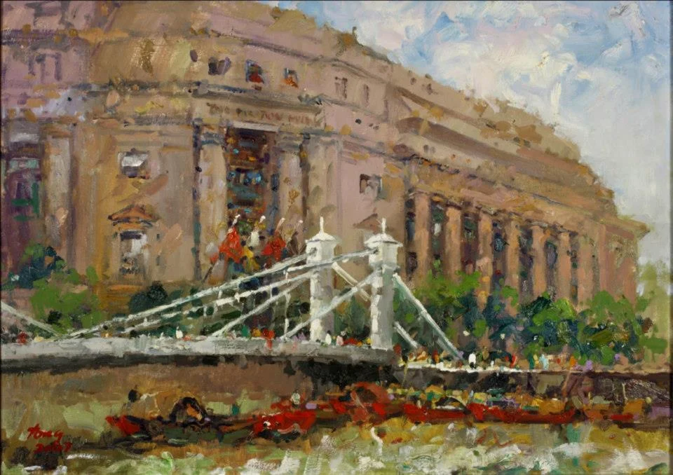 Tong works on all media including chinese painting, calligraphy, watercolour, oil and acrylic.
