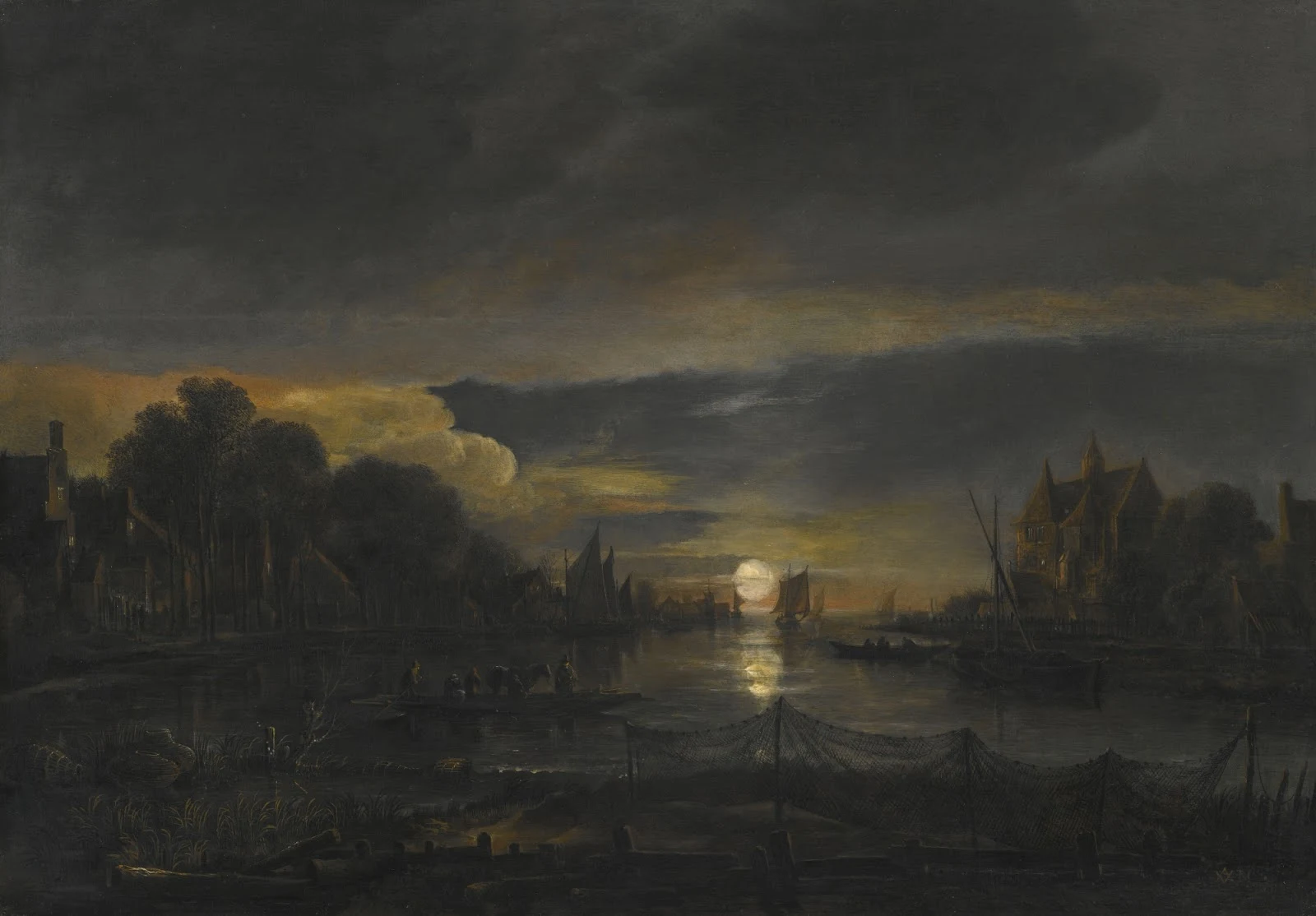Aert van der Neer, Aert also called Aernout (born 1603/04, Gorinchem [also called Gorkum, or Gorcum] or Amsterdam, Netherlands - died November 9, 1677, Amsterdam) Dutch painter of the Baroque period, famous for his nocturnal landscapes and winter scenes. His mastery of light effects is revealed in his many darkened landscapes lit by a full moon or a burning building as well as by his sensitivity to the appearance of light on water and ice.