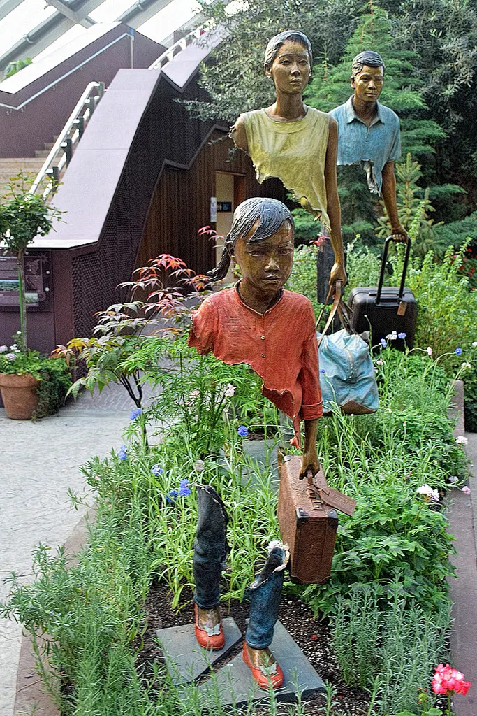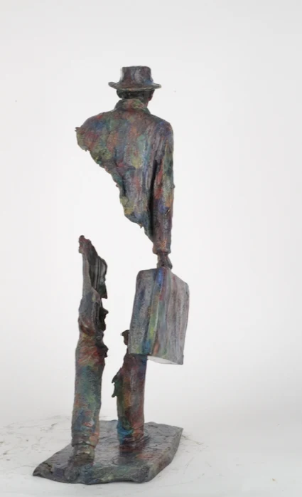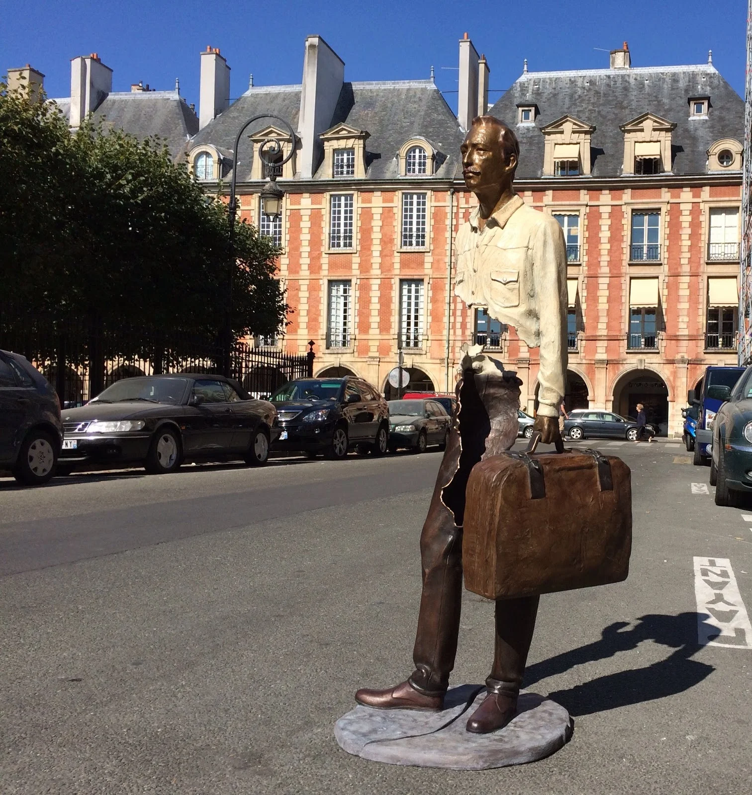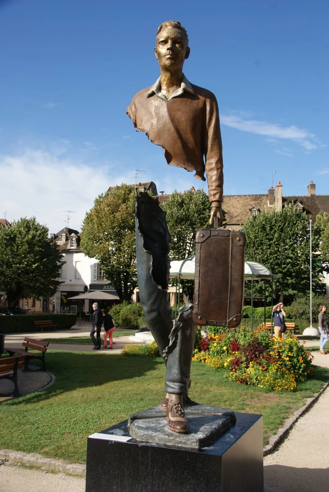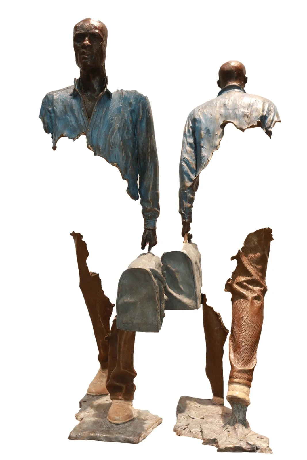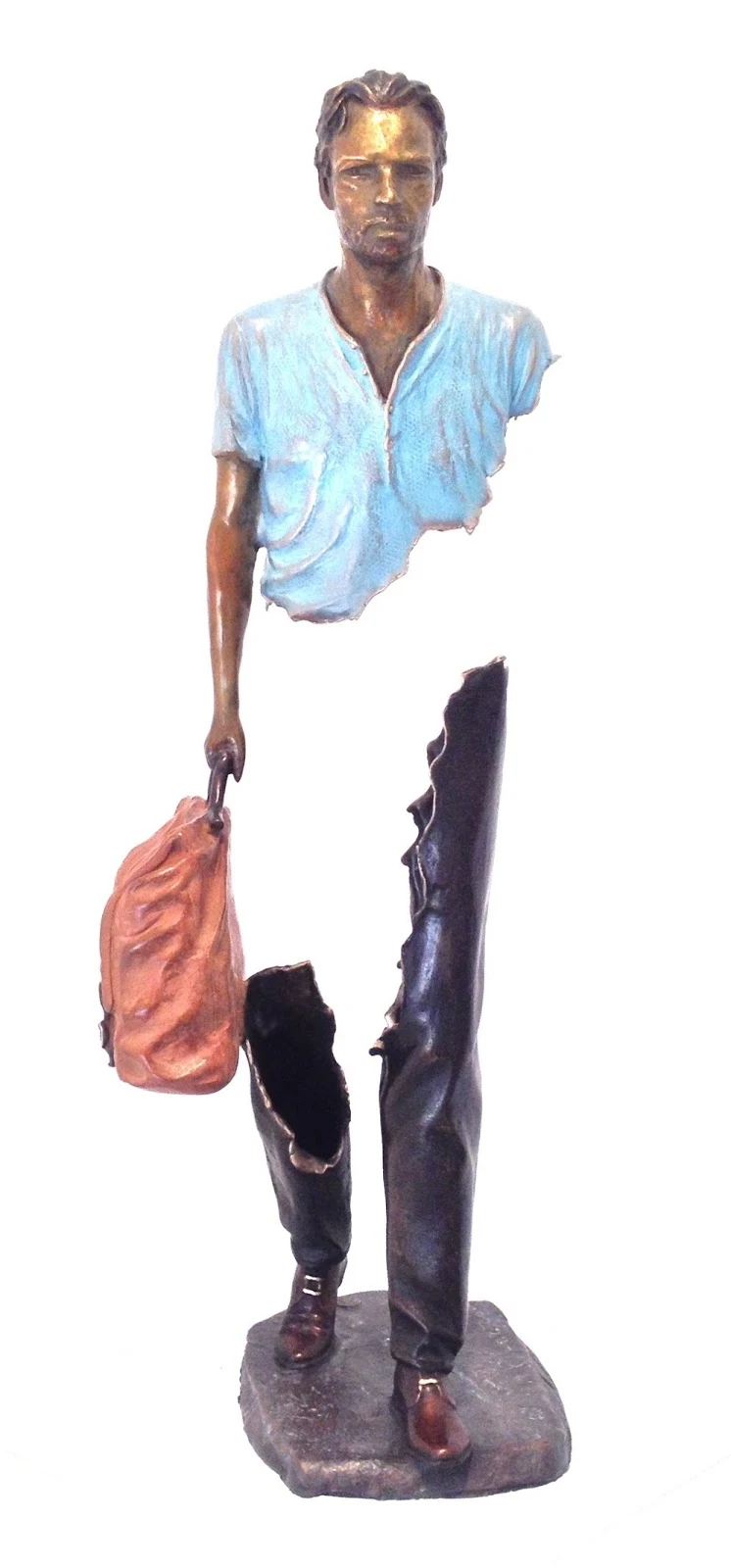 Le sue statue sono corpi vuoti, sembrano aver perso ogni organo vitale. Le sagome si completano con il tessuto urbano, facendo intravedere paesaggi e scorci a seconda della nostra immaginazione.