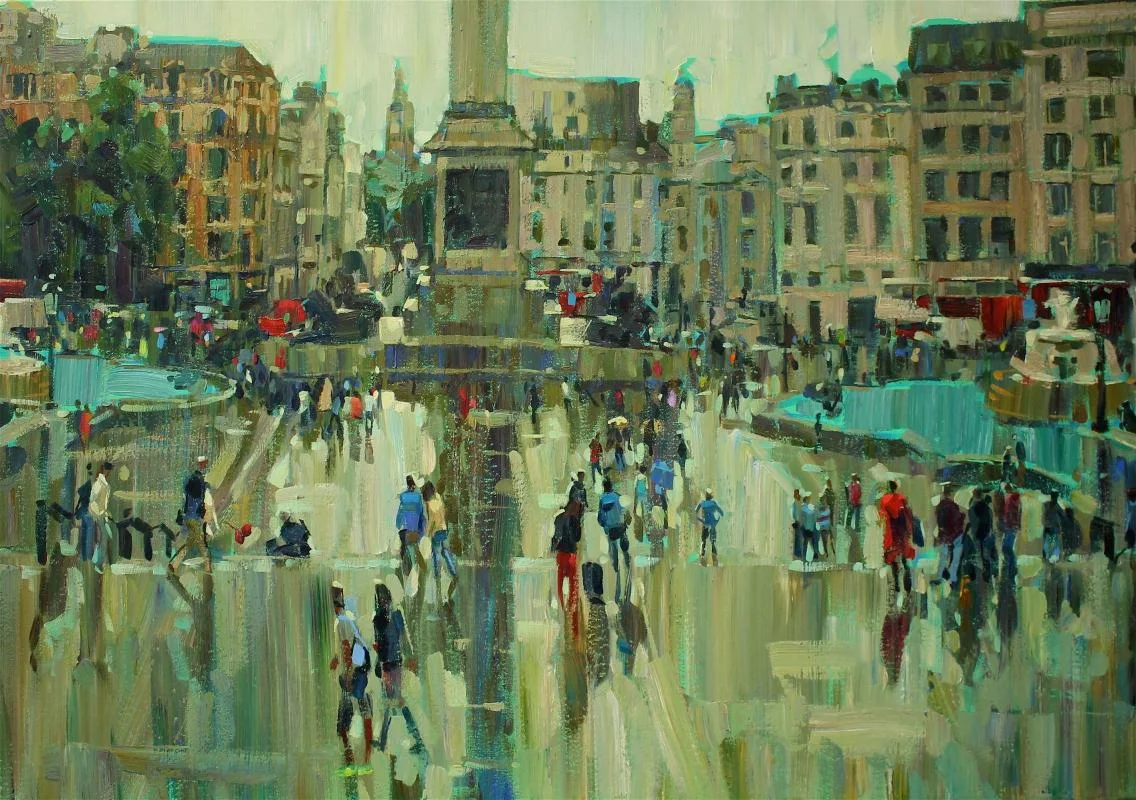 I am inspired by everyday images around me. Recently I painted a series of paintings in various cities as well as in and around the Notting Hill Carnival.