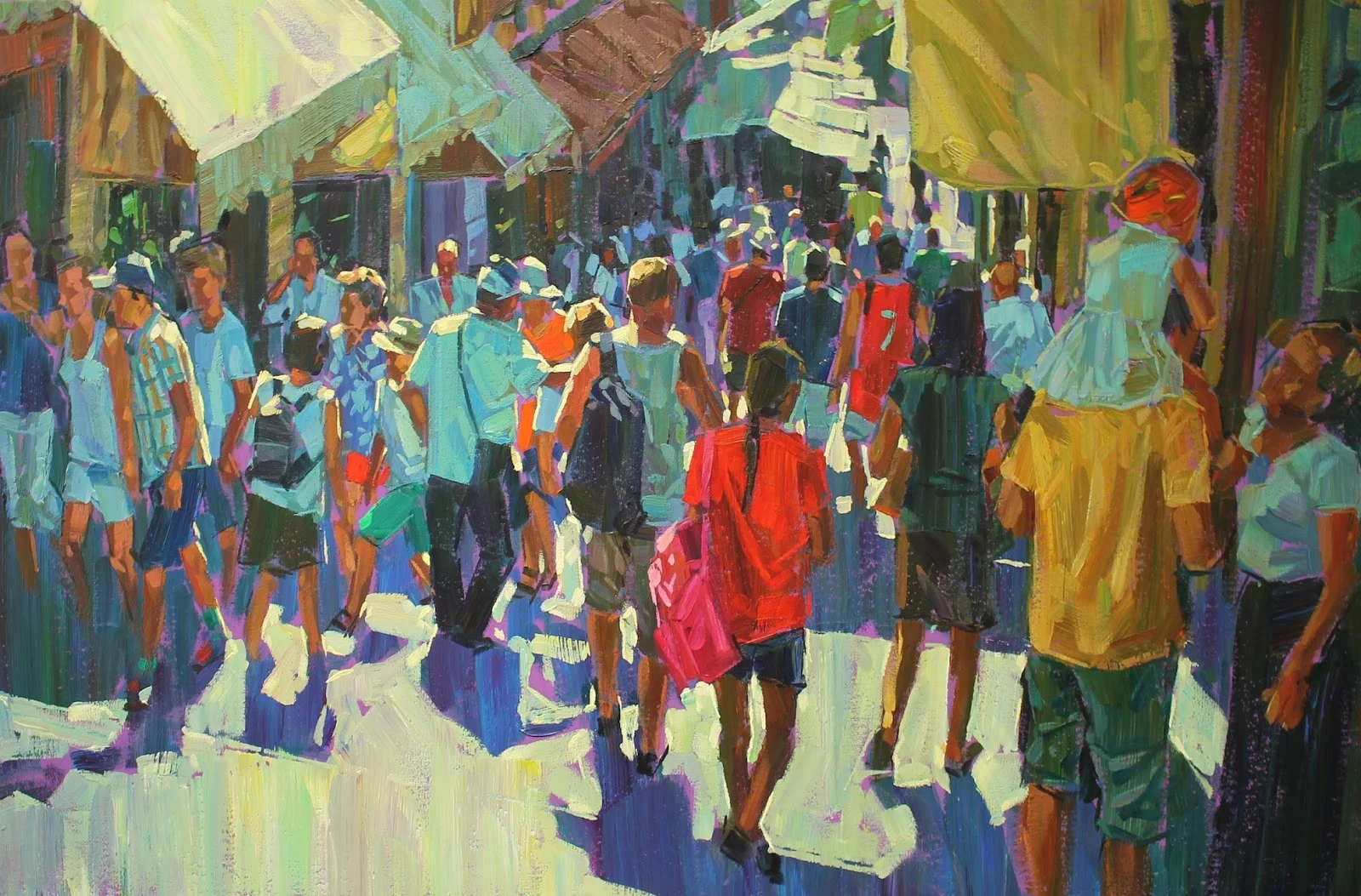 I am inspired by everyday images around me. Recently I painted a series of paintings in various cities as well as in and around the Notting Hill Carnival.