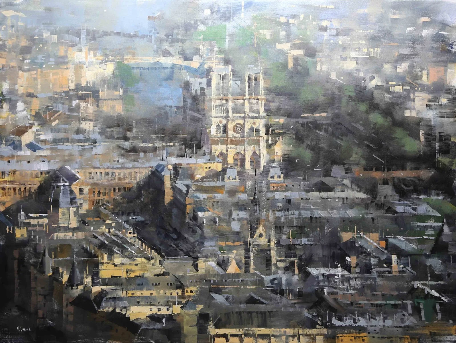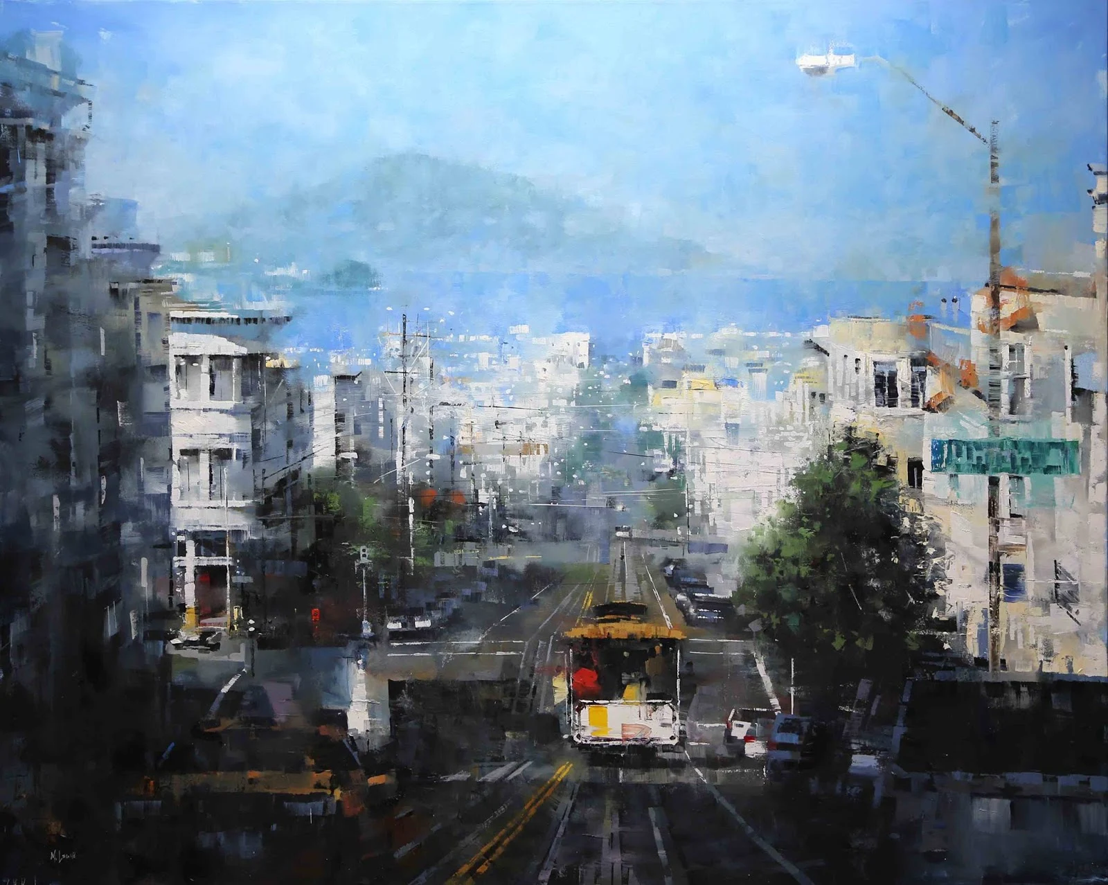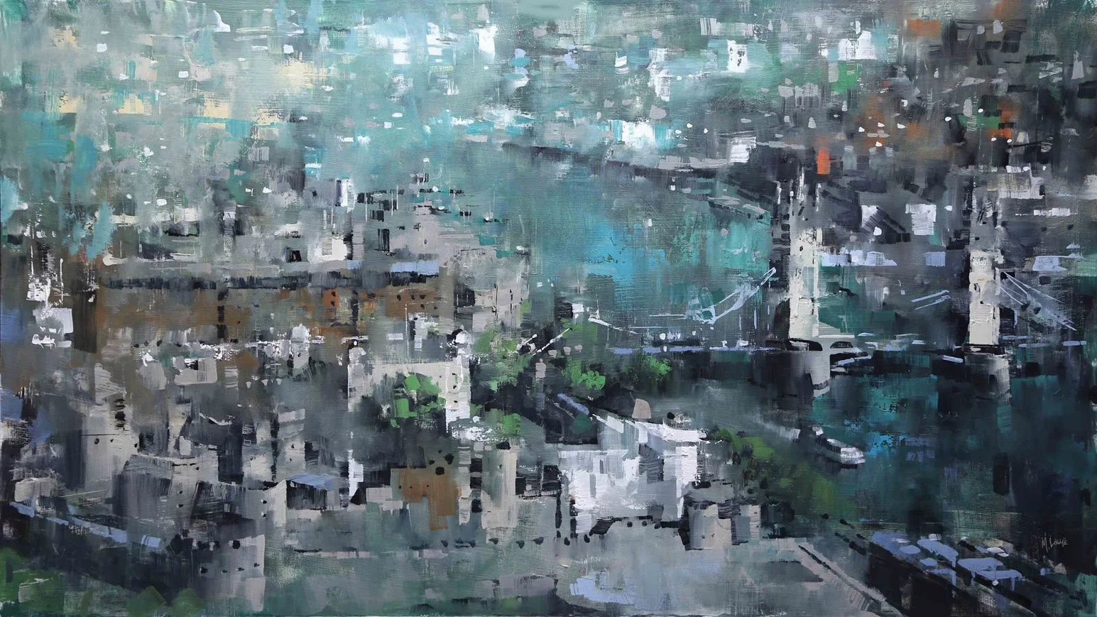Gli spettatori rimangono affascinati dalle emozionanti pennellate di questo artista, dai riflessi delle luci della città di notte e delle strade bagnate nelle giornate piovose.