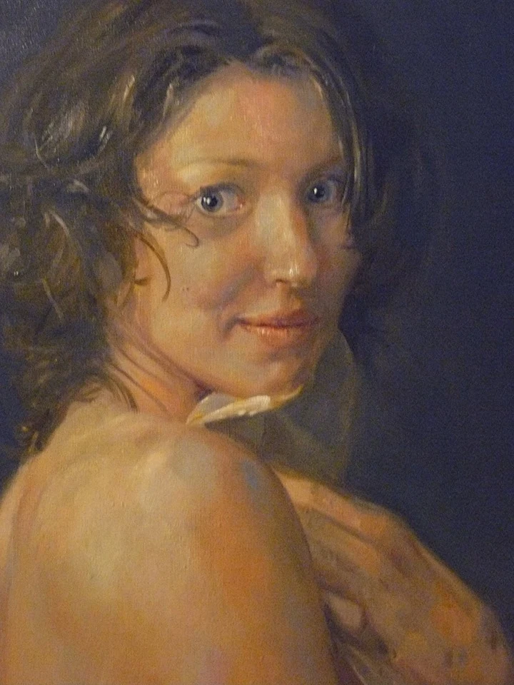 "I was my first model. At least, I always was here", she smiles. "I held the mirror in a hand, and painted with the other one. But it was not easy because I am nearsighted and I wanted to reflect without glasses!"