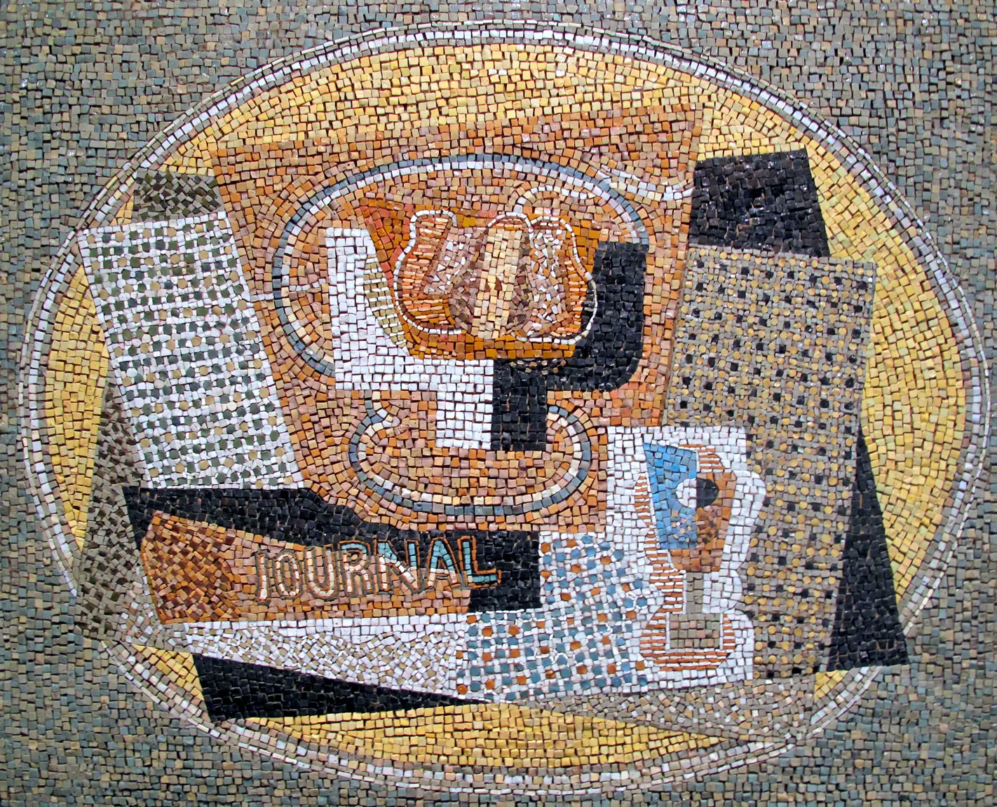 About 1916 Severini embraced a more rigorous and formal approach to composition; instead of deconstructing forms, he wanted to bring geometric order to his paintings. His works from this period were usually still lifes executed in a Synthetic Cubist manner, which entailed constructing a composition out of fragments of objects.