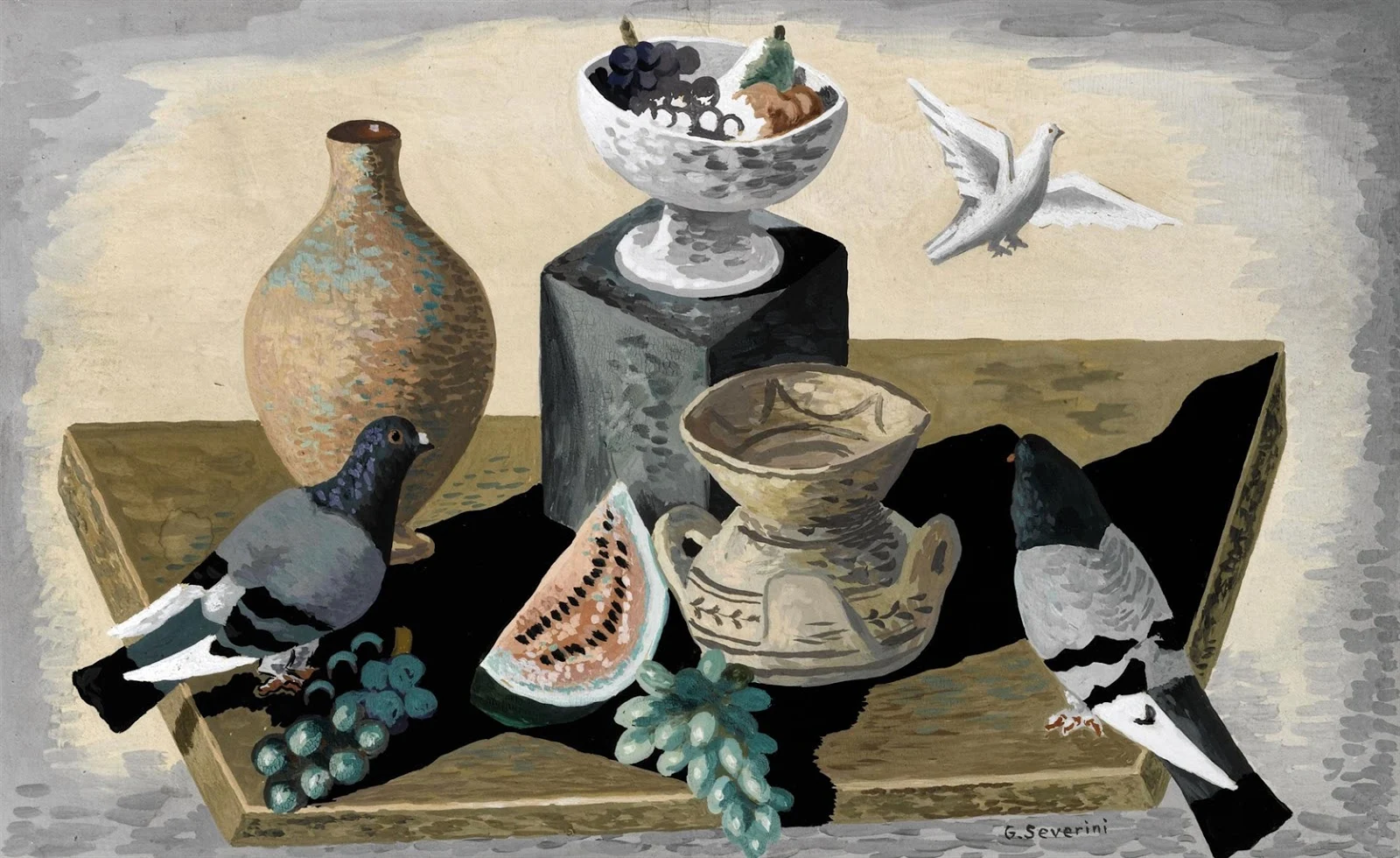 Con un intenso lavoro di elaborazione teorica, in sintonia con le posizioni espresse dal gruppo di Valori plastici, al quale aveva aderito nel 1919, Severini giunse alla definizione di calibrati ritmi compositivi nei quali temi desunti dalla commedia dell'arte, ritratti e nature morte con frammenti dell'antico, appaiono immersi in atmosfere metafisiche di luce mediterranea.