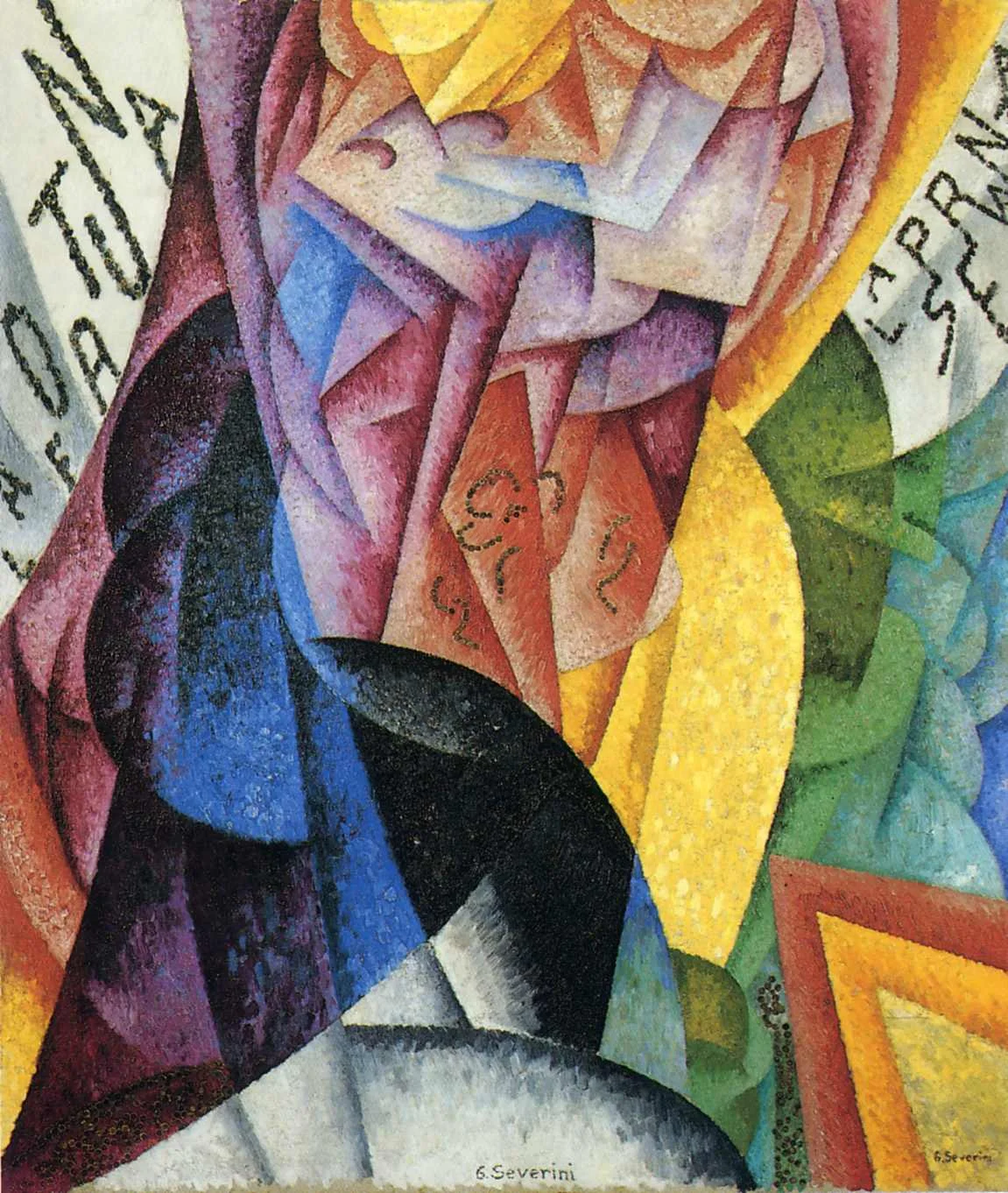 Whereas Futurists typically painted moving cars or machines, Severini usually portrayed the human figure as the source of energetic motion in his paintings.