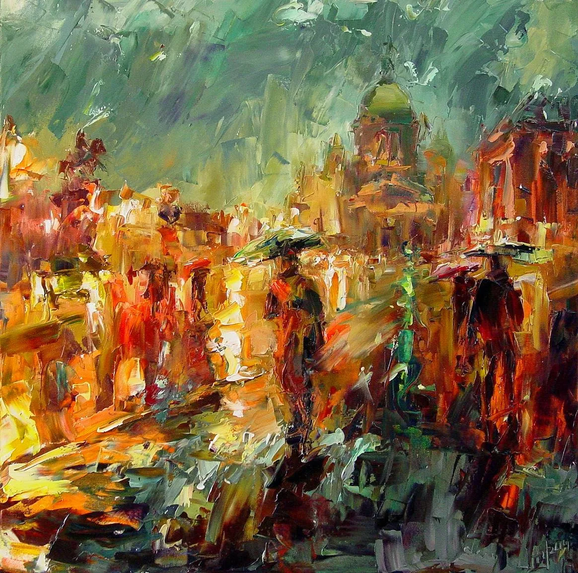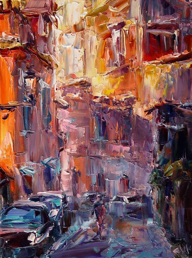 No matter what she is painting, a landscape, or a little cafe in an old European town, she wants her paintings to speak in the language of human feelings. She tries to avoid creating pictures that are just pretty. Instead she wants to communicate with people by evoking similar emotions and feelings in them.