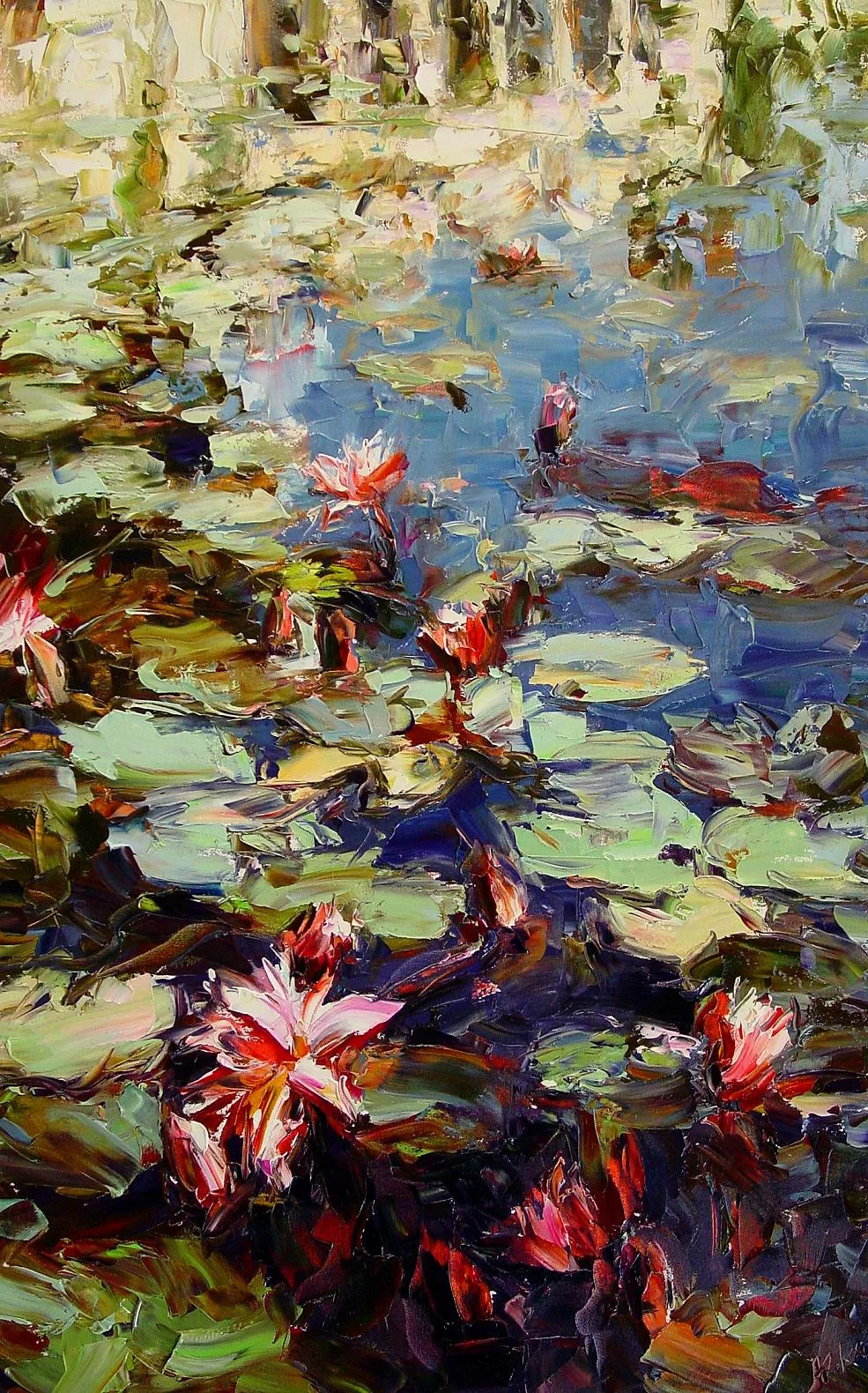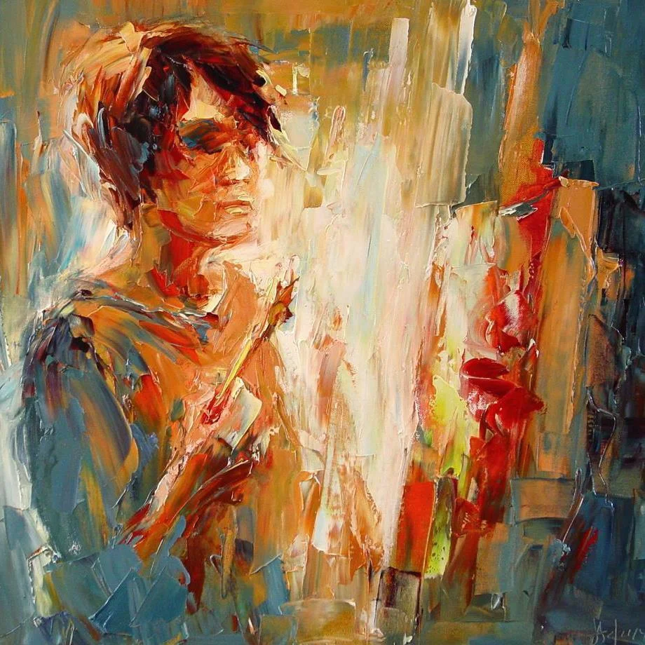 She replaced her painting brush with palette knife in order to create bolder, brighter, and powerful images of nature, flowers, and people.