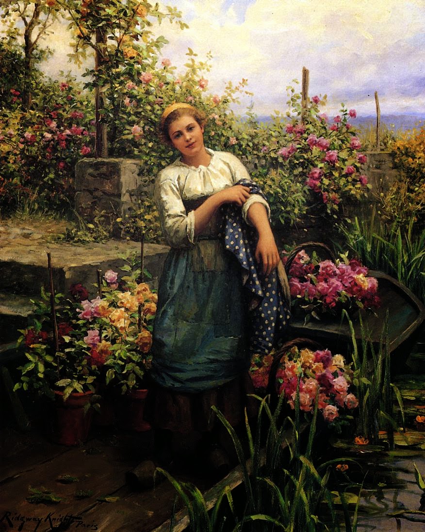 Daniel Ridgway Knight was an American artist🎨 born in Chambersburg, Pennsylvania. He painted peasant women out of doors with great popular success.