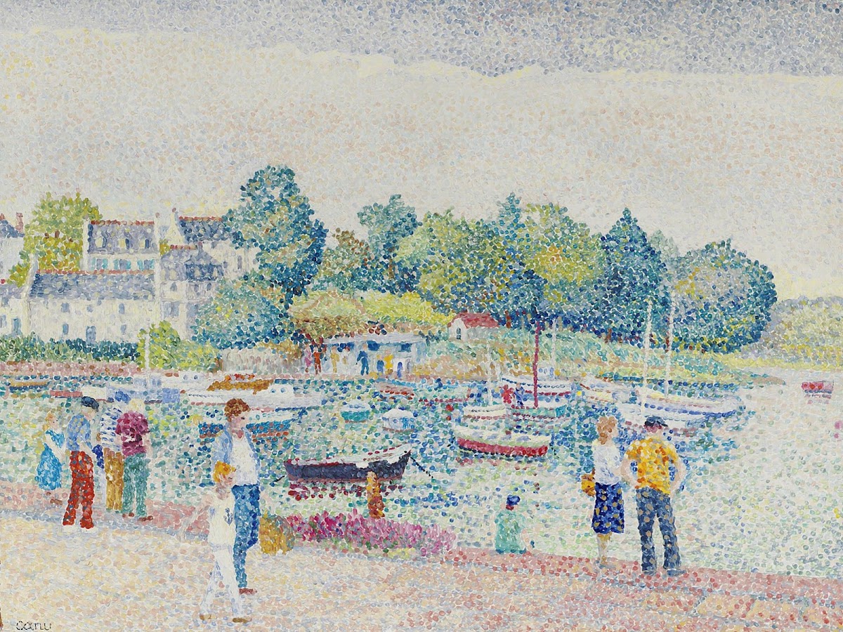 Particularly it has been noted that Yvonne Canu was strongly influenced by Seurat's masterpiece Un dimanche après-midi à l'Île de la Grande Jatte / A Sunday Afternoon on the Island of Grande Jatte.