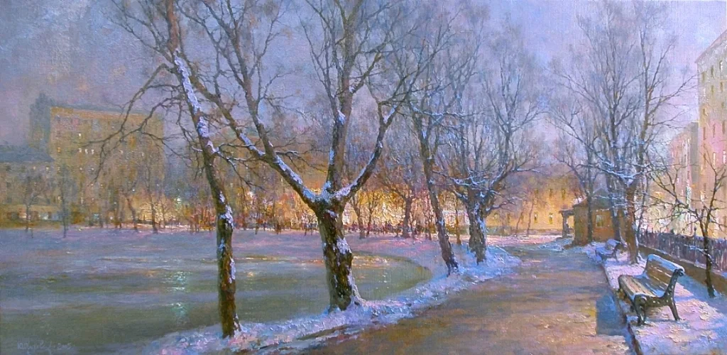 Юрий Обуховский lavora nel genere del paesaggio ad olio ed acquerello, continuando e sviluppando le tradizioni della scuola realistica russa verso il "Realismo Romantico”.