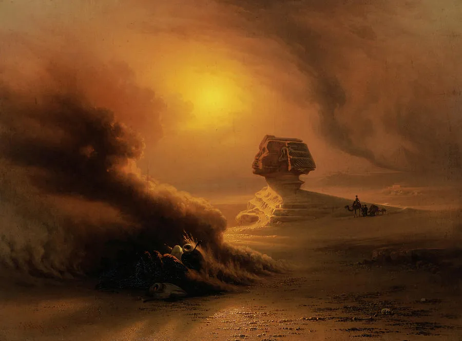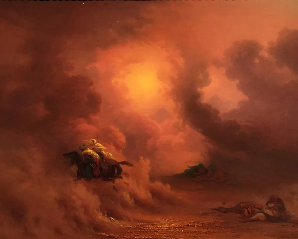 It is to be regretted that he was obliged to make but a short stay on account of his health. His painting of 'Chamsyn in the Desert', in the possession of the Emperor of Germany, was produced in 1845, and is greatly admired.