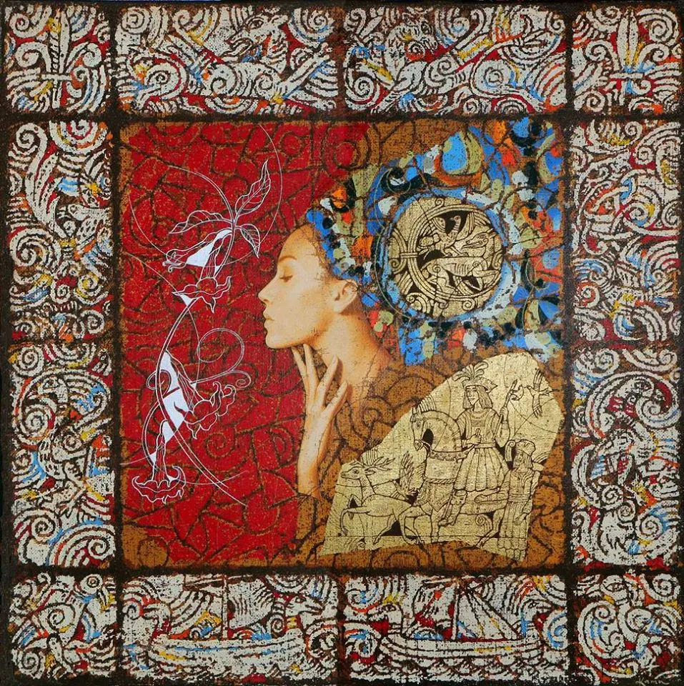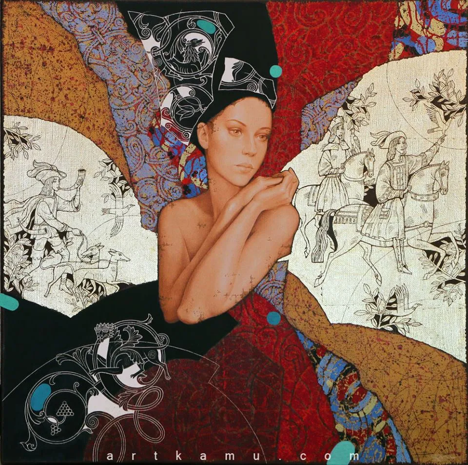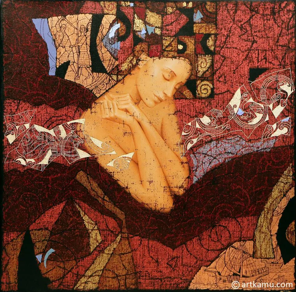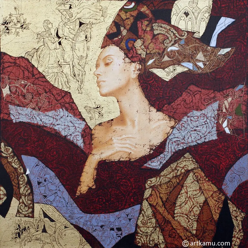 - Olga Kamennoy / Ольга Каменная è nata a Mosca, in Russia e collabora con Sergey nella composizione dei dipinti: Sergey disegni preparara i disegni in bianco e nero, disegna i personaggi, temi su foglia d'oro e aggiunge incisioni. Olga sceglie e lavora con i colori.
