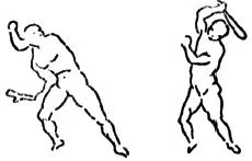 Quando l'uomo si dispone alla creazione del moto con la forza, esso si piega e torce quanto può nel moto contrario a quello dove vuol generare la percussione,