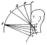 Vedi in a che non v'illumina parte alcuna del cielo fk, ed in b vi illumina il cielo ik, ed in c il cielo hk, ed in d il cielo gk, ed in e il cielo fk integralmente; adunque il petto sarà di pari chiarezza della fronte, naso e mento.
