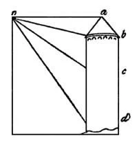 Provasi per la quarta di questo, che dice: l'aria esser tanto piú grossa quanto è piú bassa, e tanto piú sottile quanto è piú alta. E questo si dimostra per essa quarta posta in margine; e diremo la torre af esser veduta dall'occhio n nell'aria grossa, la quale si divide in quattro gradi, tanto piú grossi, quanto sono piú bassi.