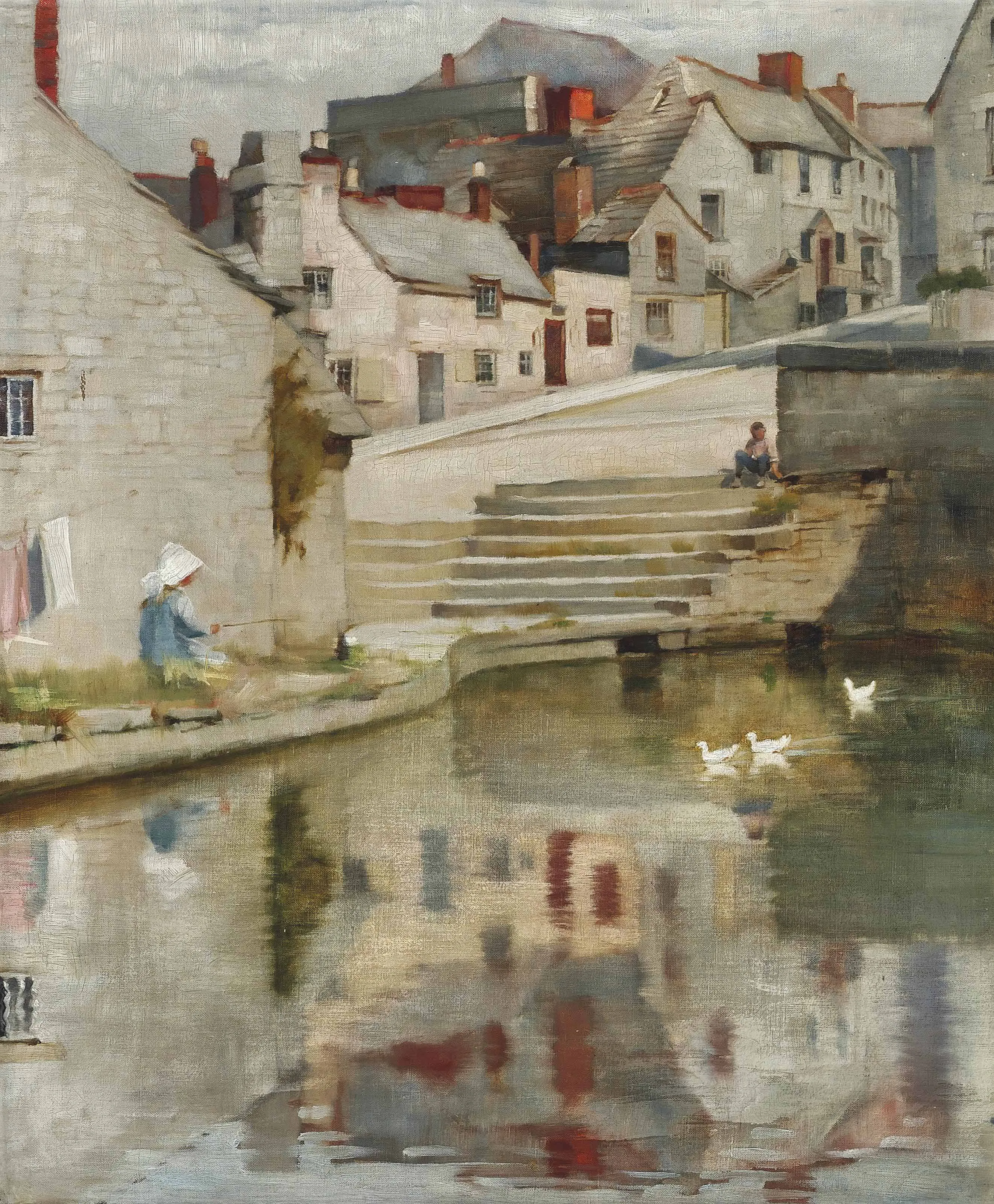 He then spent eight months of 1885 in Newlyn working on a single large canvas - Dame Grigson's Academy - before leaving the artists' colony forever. Stanhope Forbes described him as "a good friend, but morose".