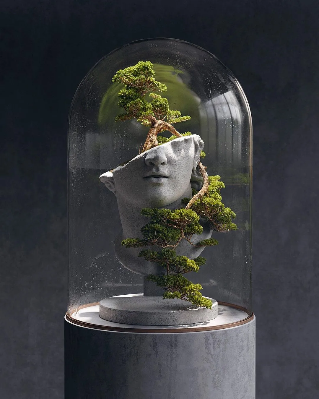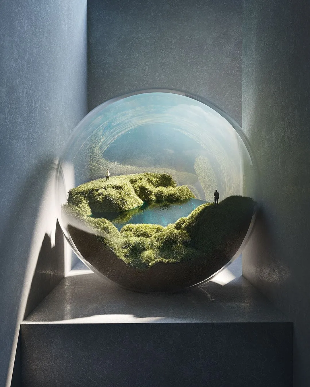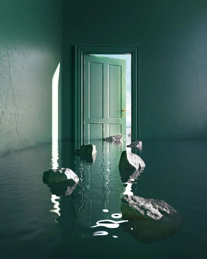 Pensa a render surreali che ti faranno sembrare due volte, dopotutto, lui cita Dalì e Magritte come influenze che prende e reinterpreta per lo spettatore contemporaneo.