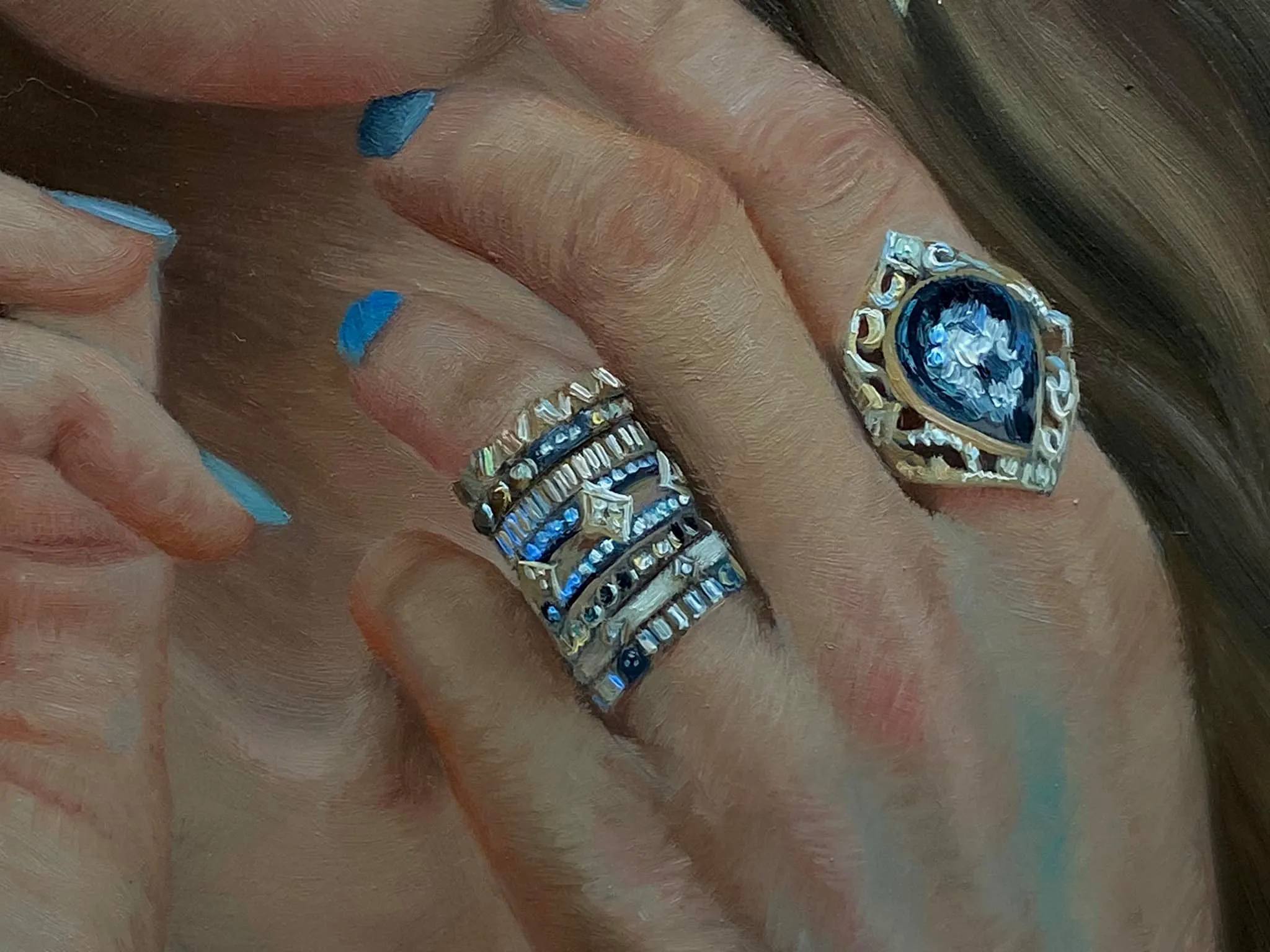 Her inspiration comes from painting people that are important in her life, and her goal is to capture each person's story in an honest and meaningful way. Shana draws inspiration from her own experiences and uses specific series as a way to illustrate chapters in her life.