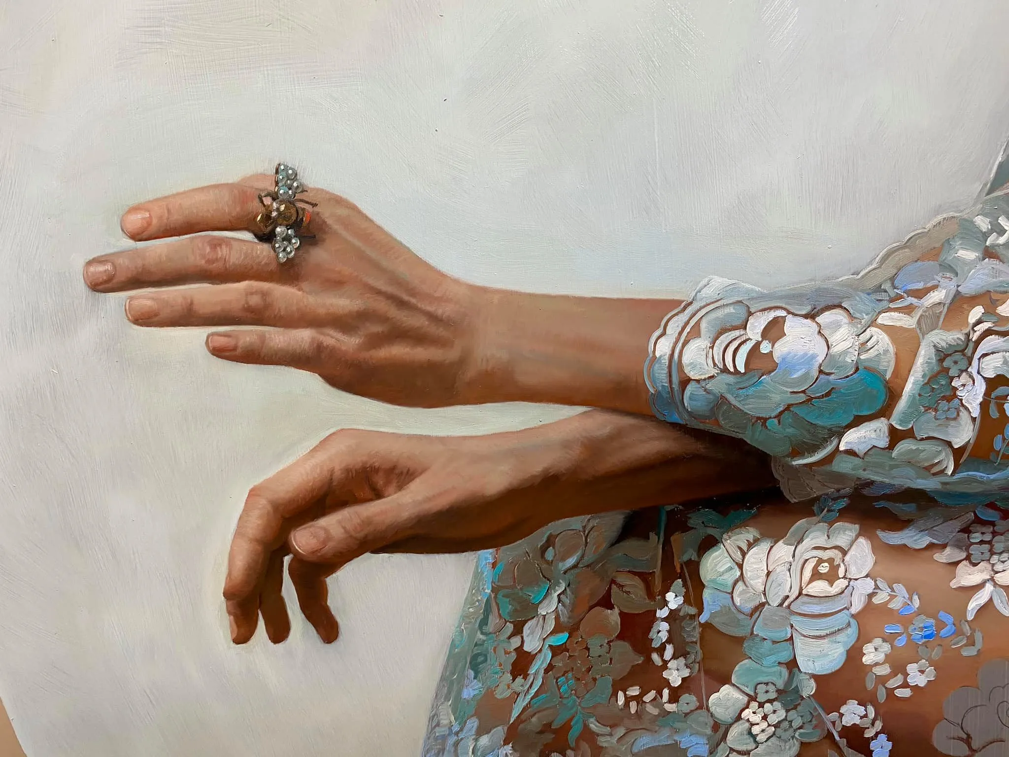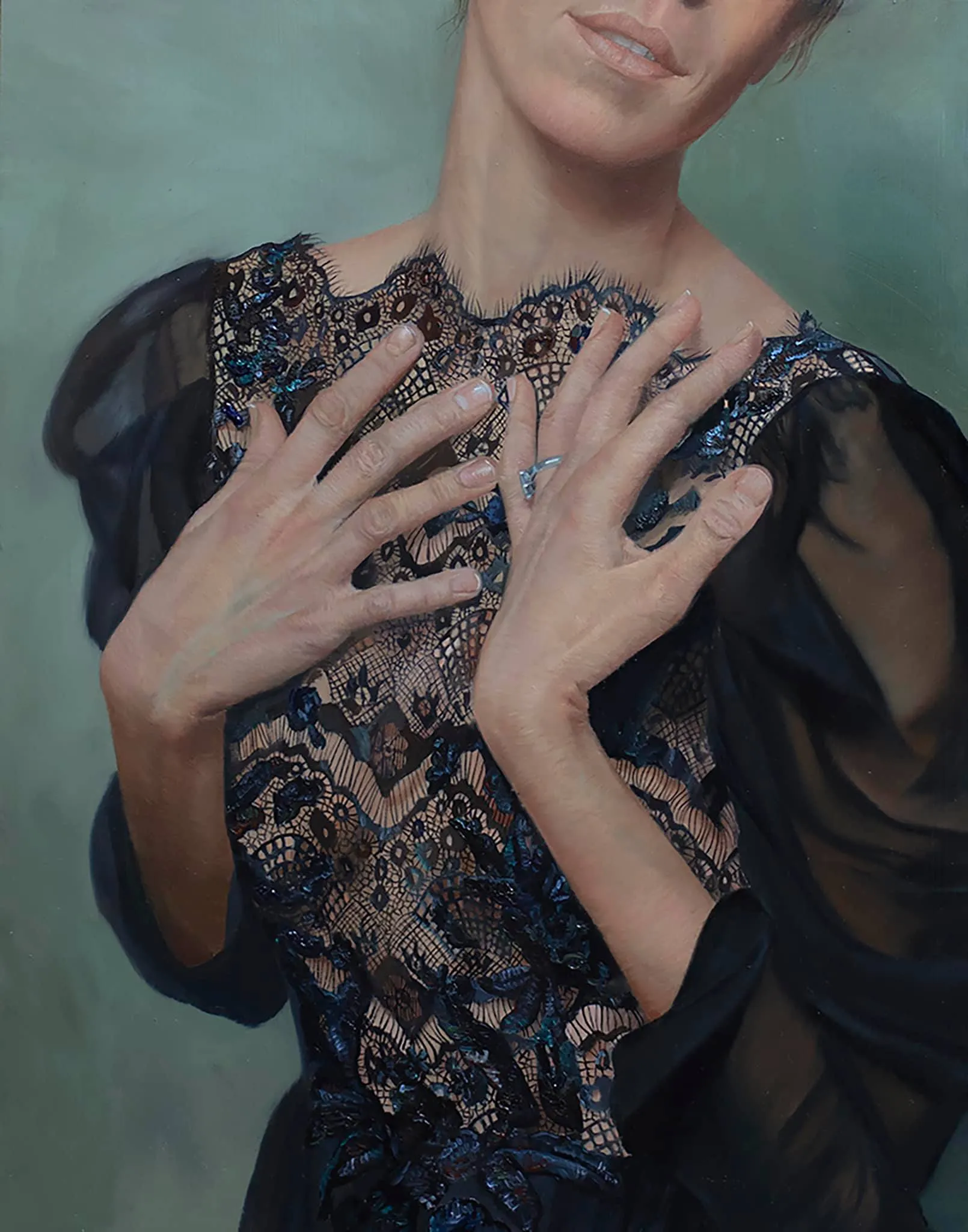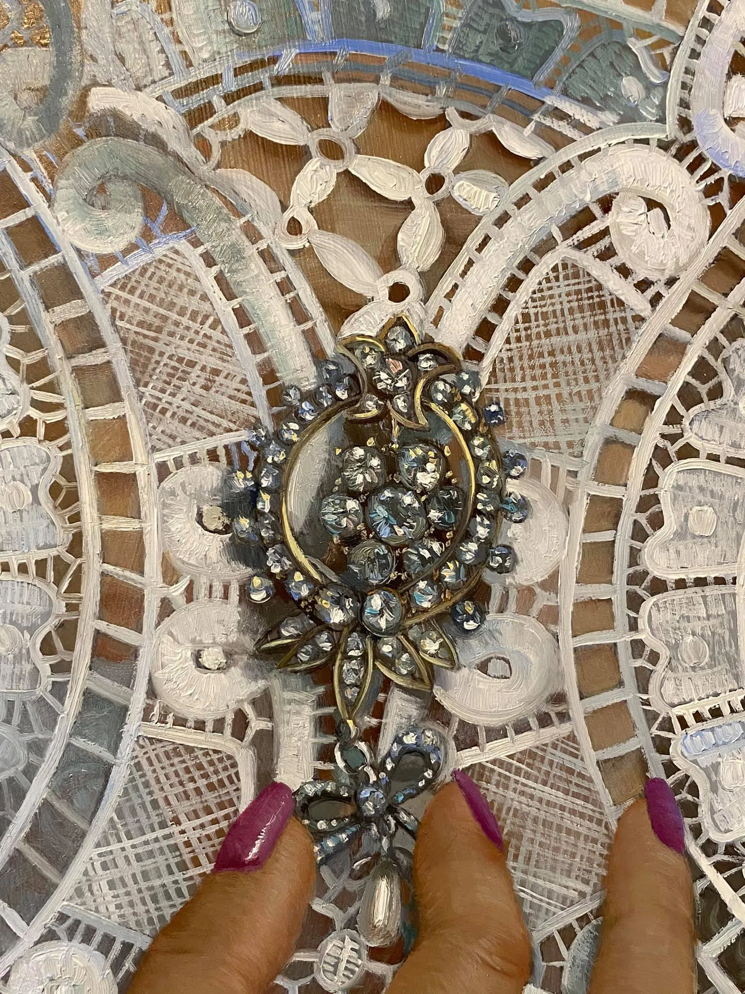 Il suo background nella moda ha ispirato la sua nuova serie di dipinti di pizzo.