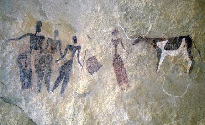Ukhahlamba-Drakensberg, Sudafrica -ora datati a circa 3.000 anni fa, i dipinti della popolazione San - che vi si stabilì attorno a 8.000 anni fa - rappresentano animali e uomini, e si ritiene che abbiano un valore religioso.