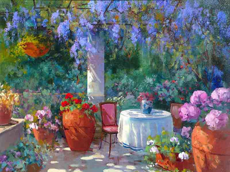 Maria Serafina Tribunella is an American of Sicilian origin (born in Collesano, Palermo); raised and educated in New York City. After receiving a Bachelor of Fine Arts degree from New York University, she married and moved to the home of her ancestors, Italy. It is there shat she now resides making her living as an accomplished painter alongside her husband, the Neapolitian artist, Raimondi Roberti.