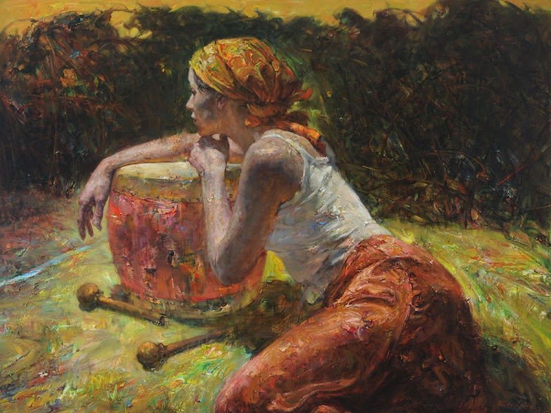 He is best known for his blend of luminous color and buttery texture that evoke the enigmatic environment where moments of meditation originate. He uses profusely colored, thickly texturized, monumental portraits of expressive western women invariably accompanied by sunflower plant motifs representing memories from his rural upbringing.